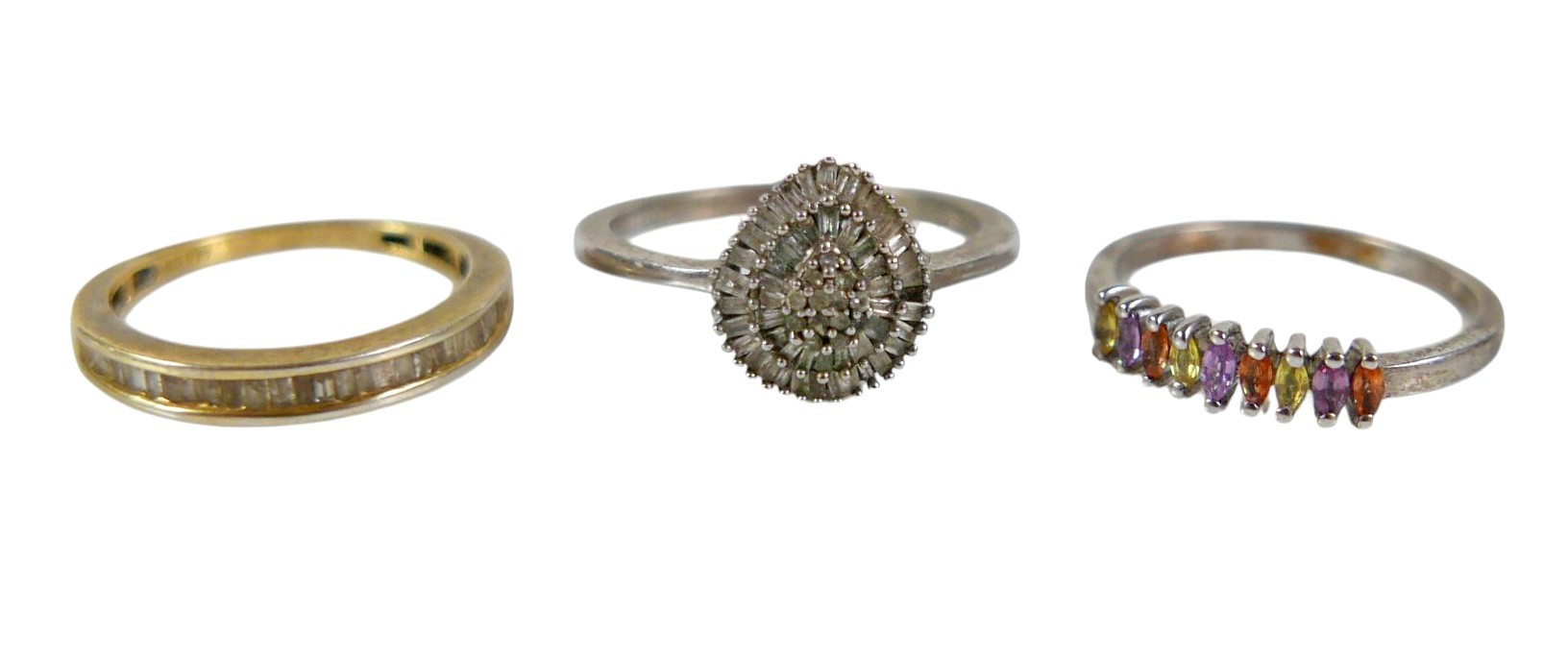 A collection of diamond and moissanite silver jewellery, inc...