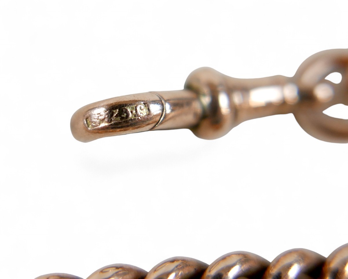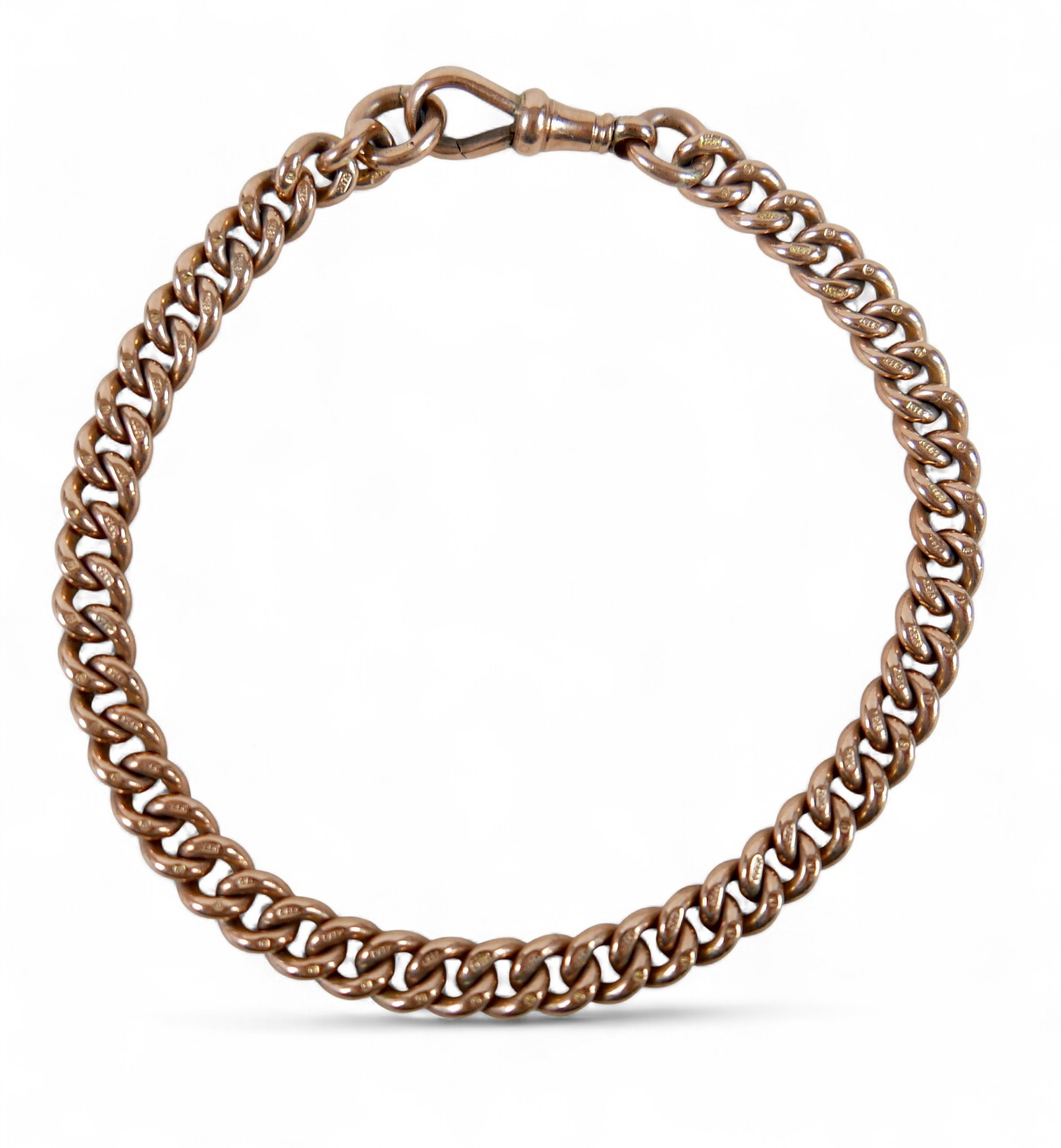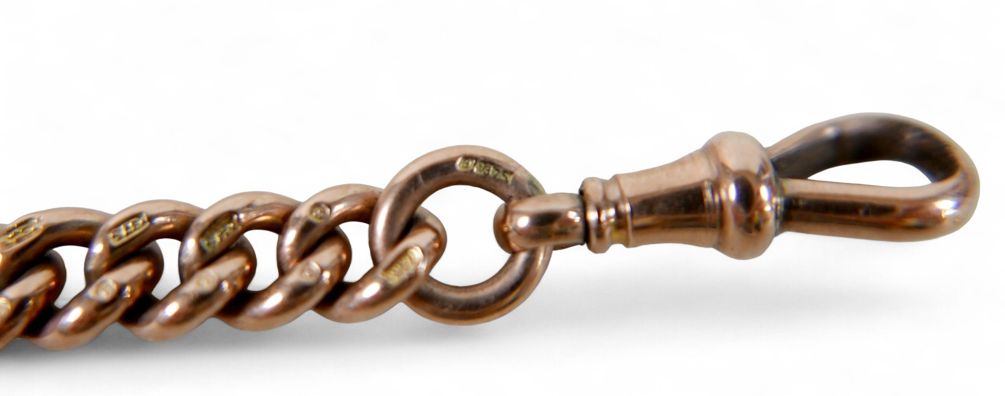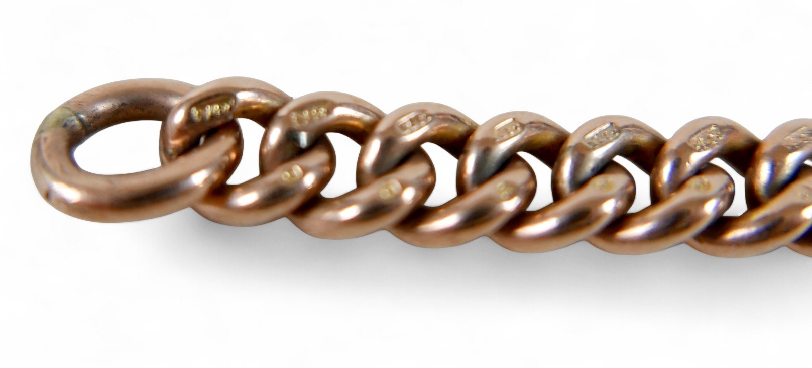 A 9ct yellow gold kerb link watch chain bracelet, each link ...