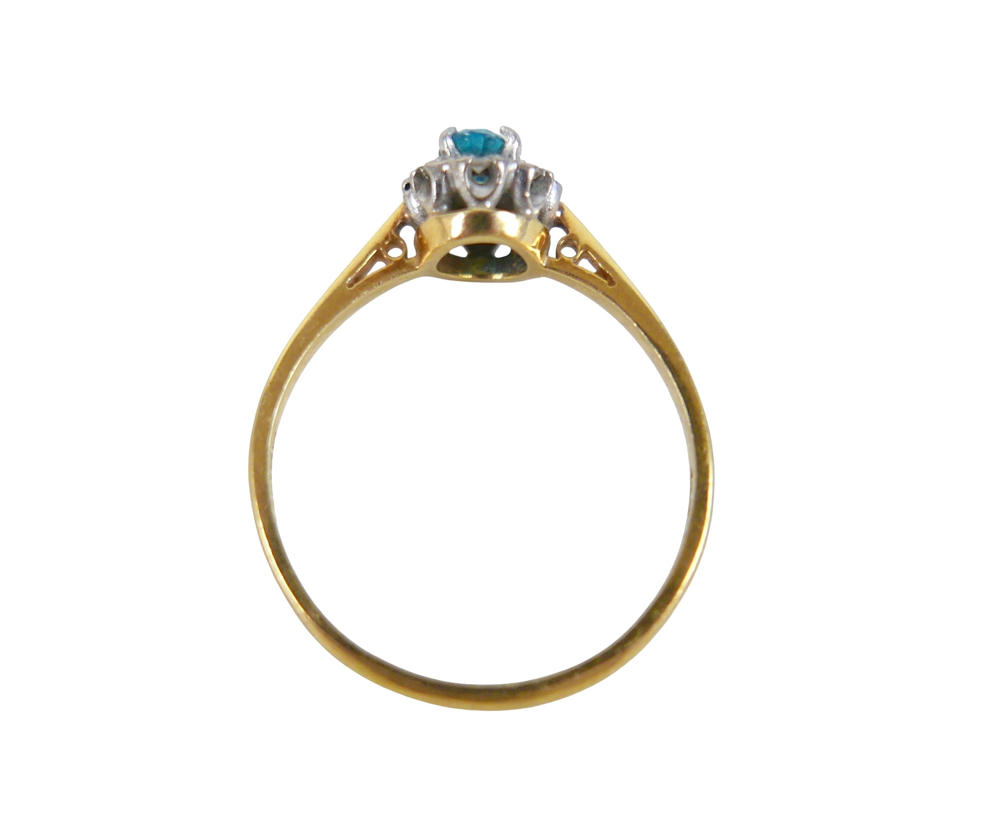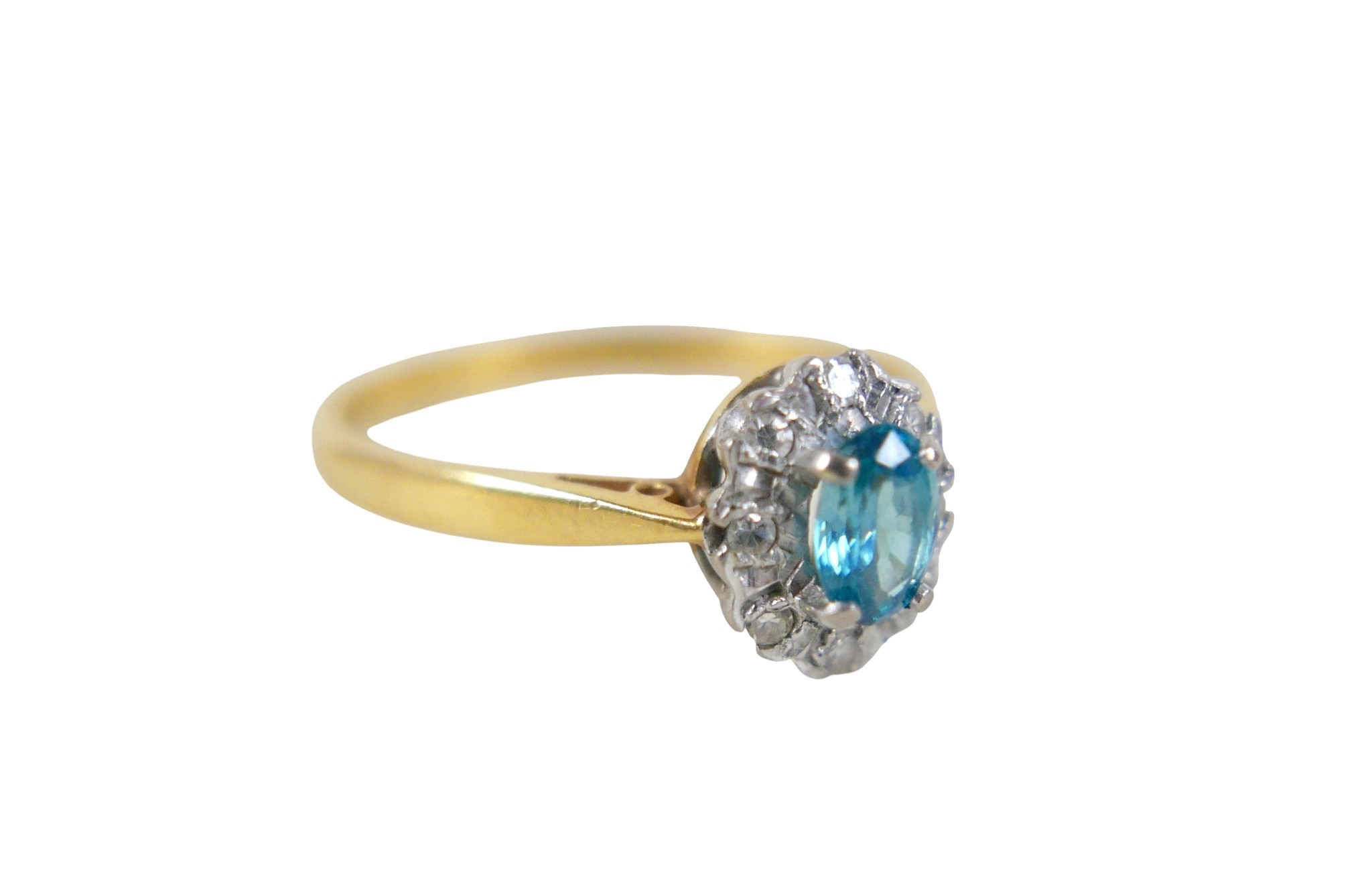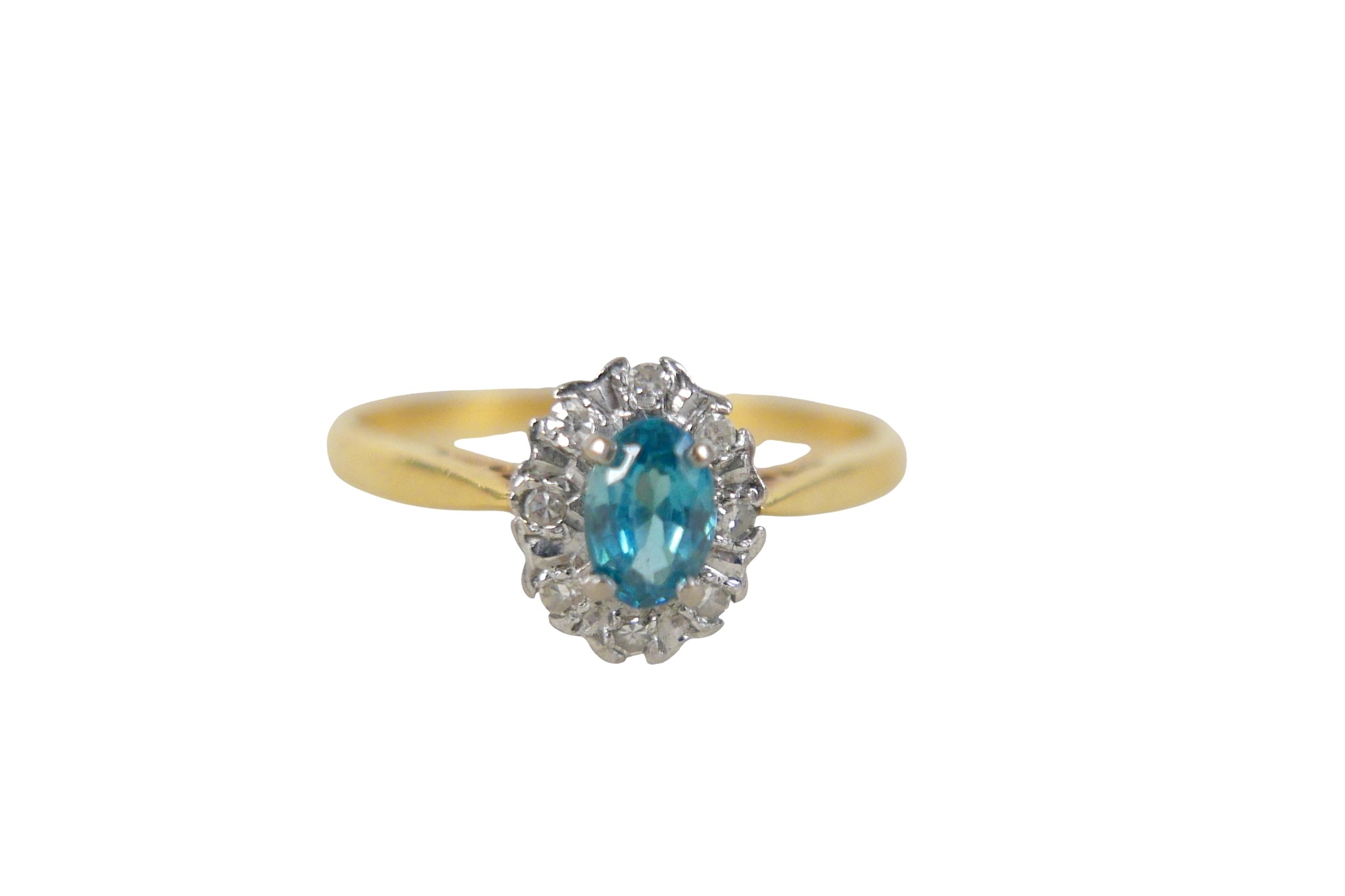 An 18ct yellow gold pale sapphire and diamond cluster ring size W, head size 10 by 8mm, 4.0g.
