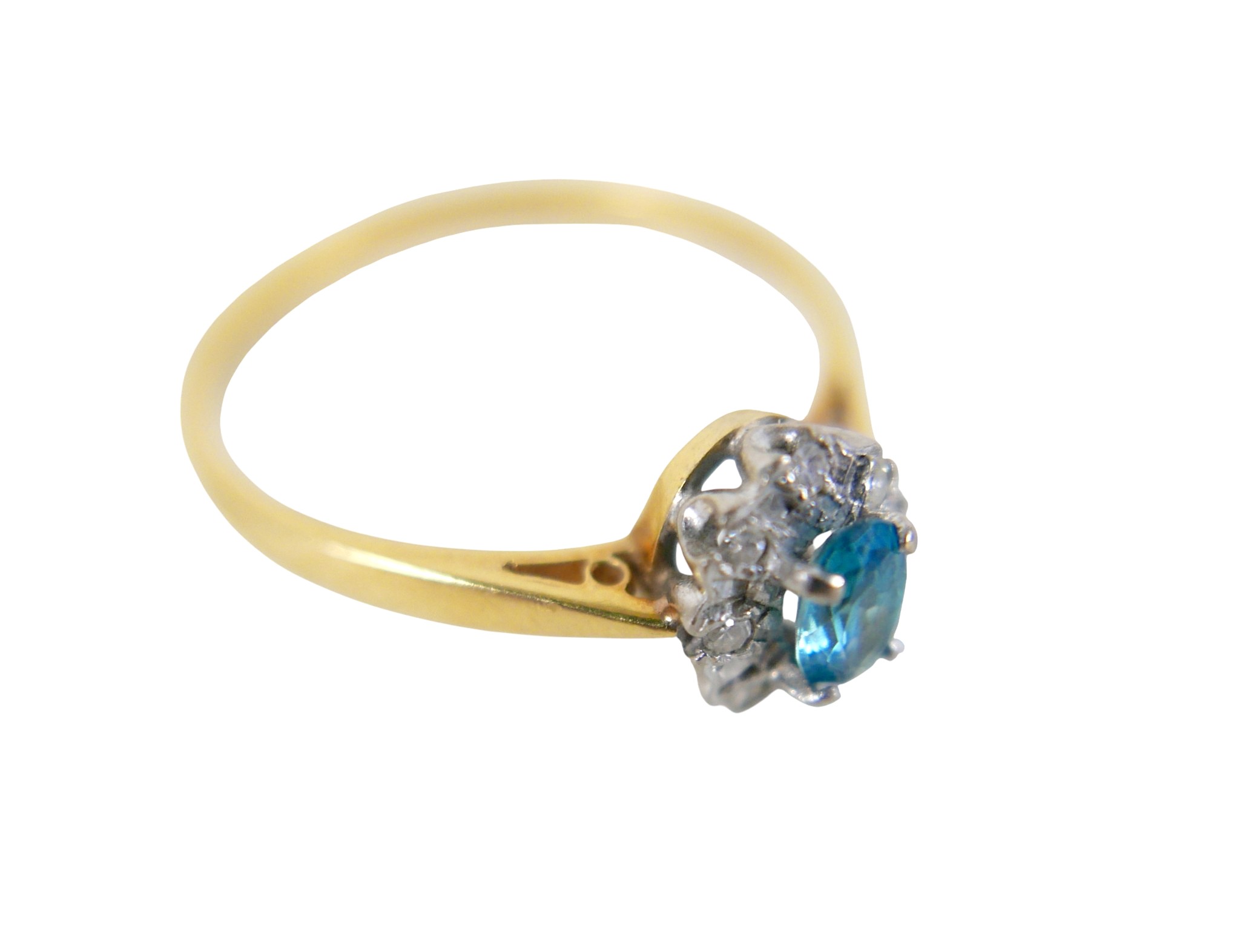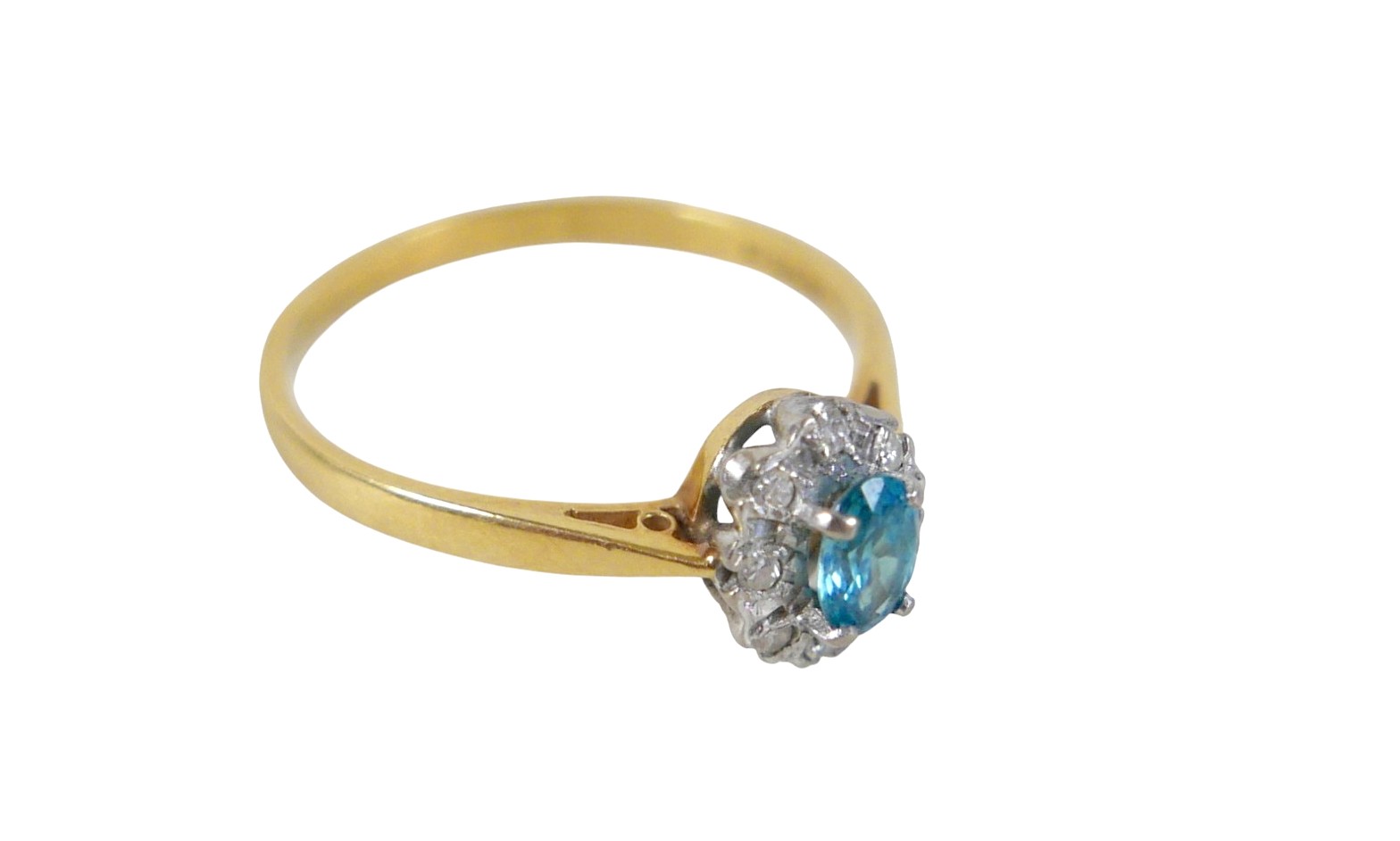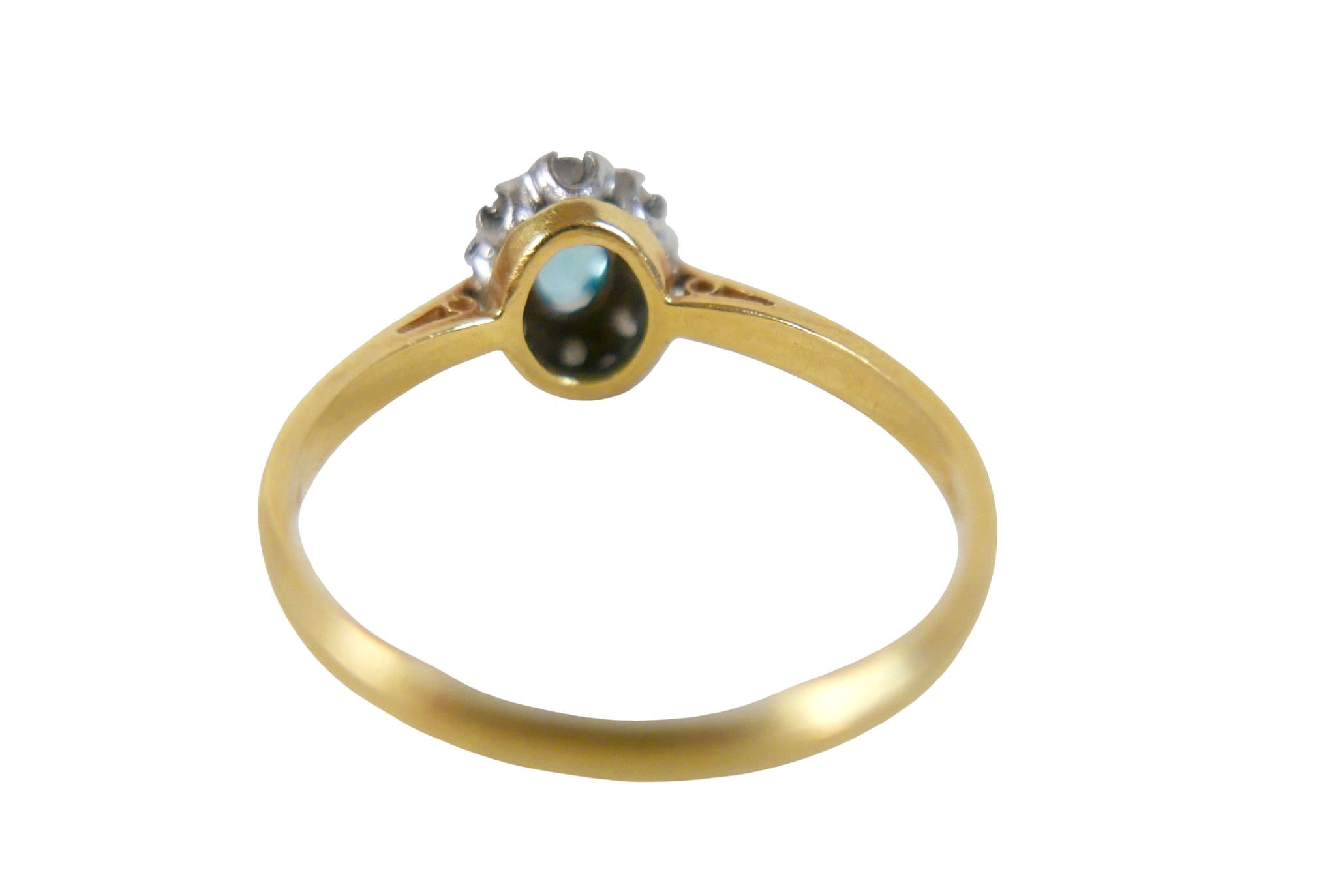 An 18ct yellow gold pale sapphire and diamond cluster ring size W, head size 10 by 8mm, 4.0g.