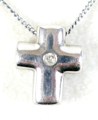 A 9ct white gold diamond set crucifix on a fine 9ct chain 12...