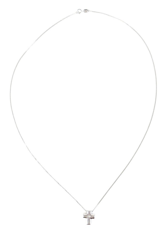 A 9ct white gold diamond set crucifix on a fine 9ct chain 12 by 10 by 5mm, chain 46cm, 3.1g.