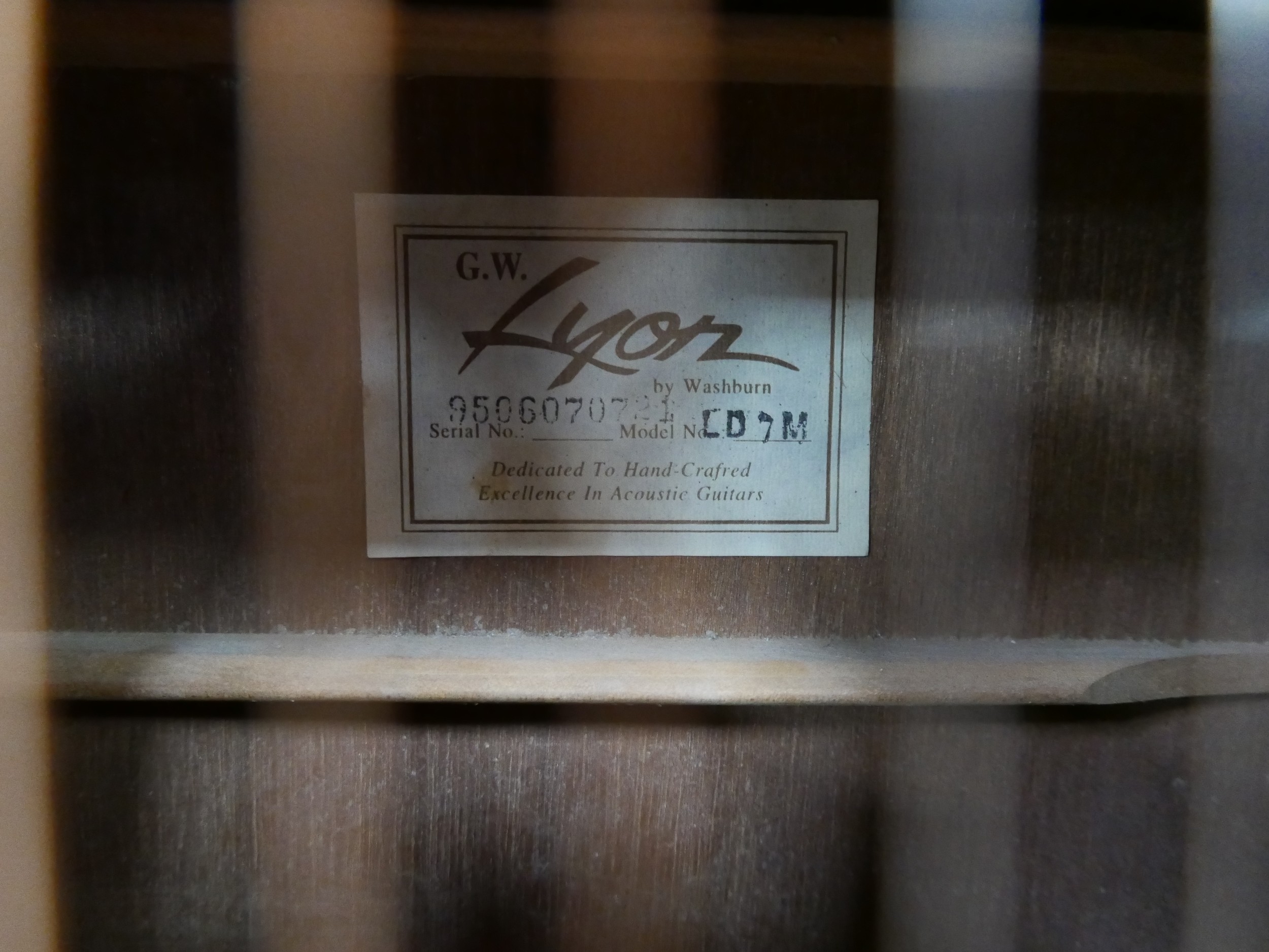 A Washburn G. W. Lyon LD 7M, six string acoustic guitar.
