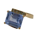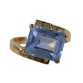A 9ct gold blue synthetic spinel stone and diamond ring, siz...