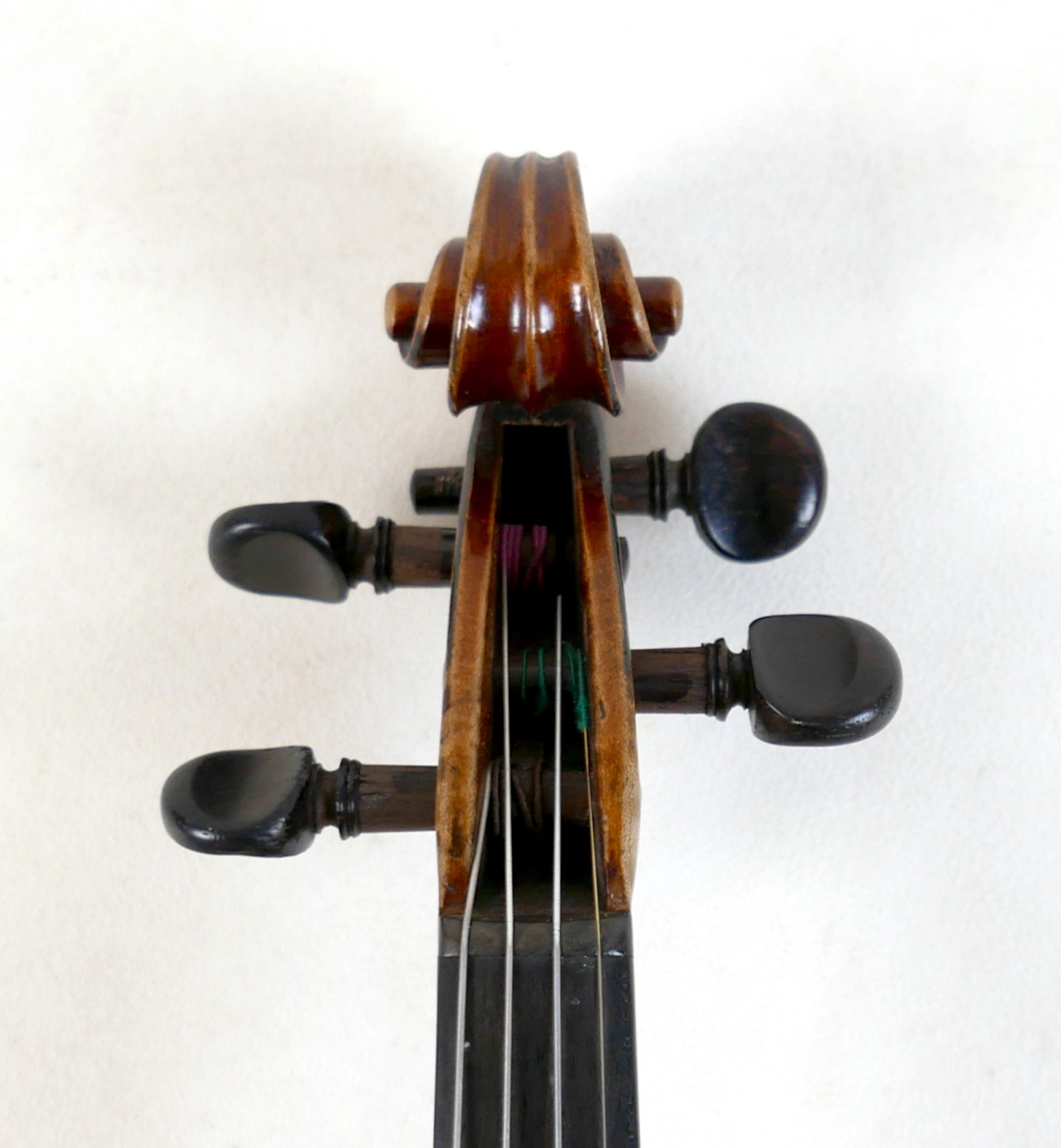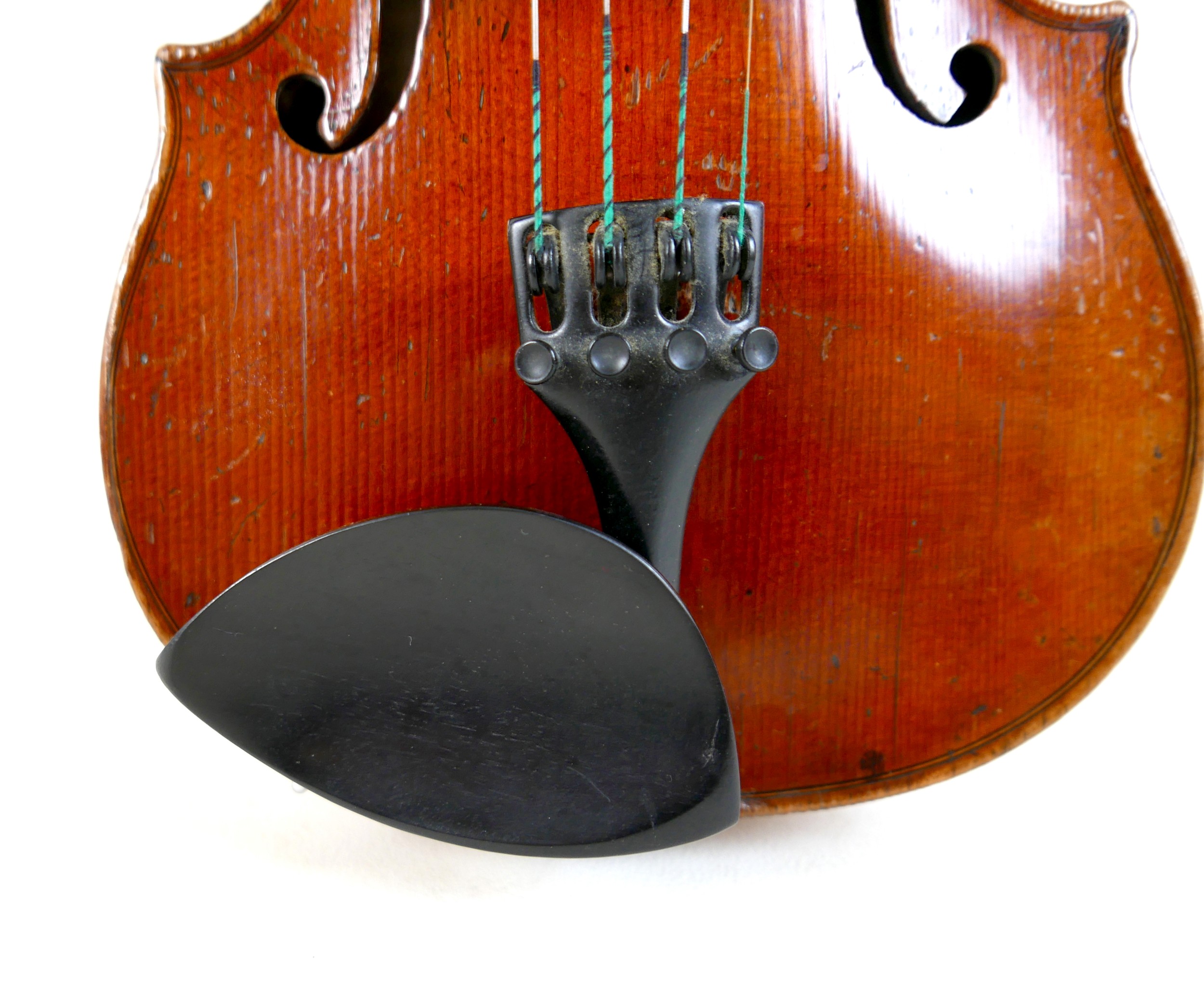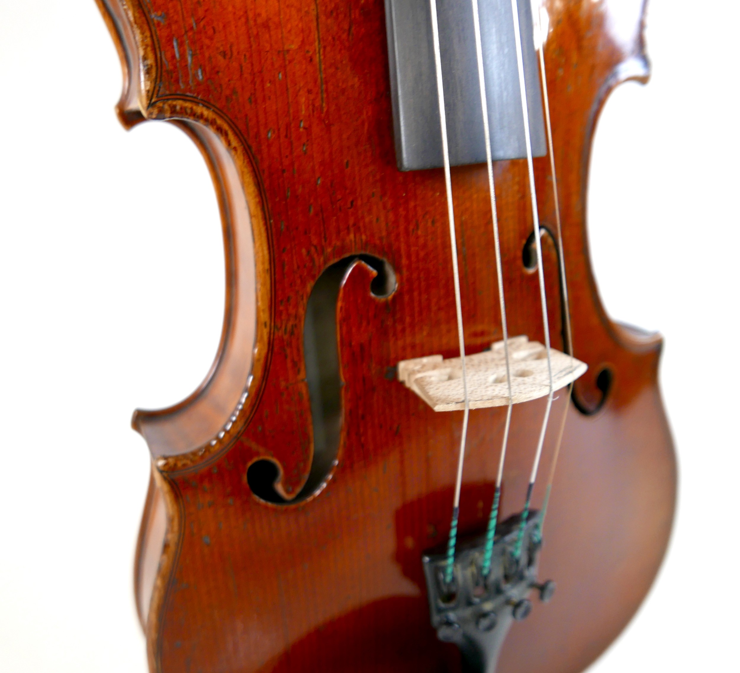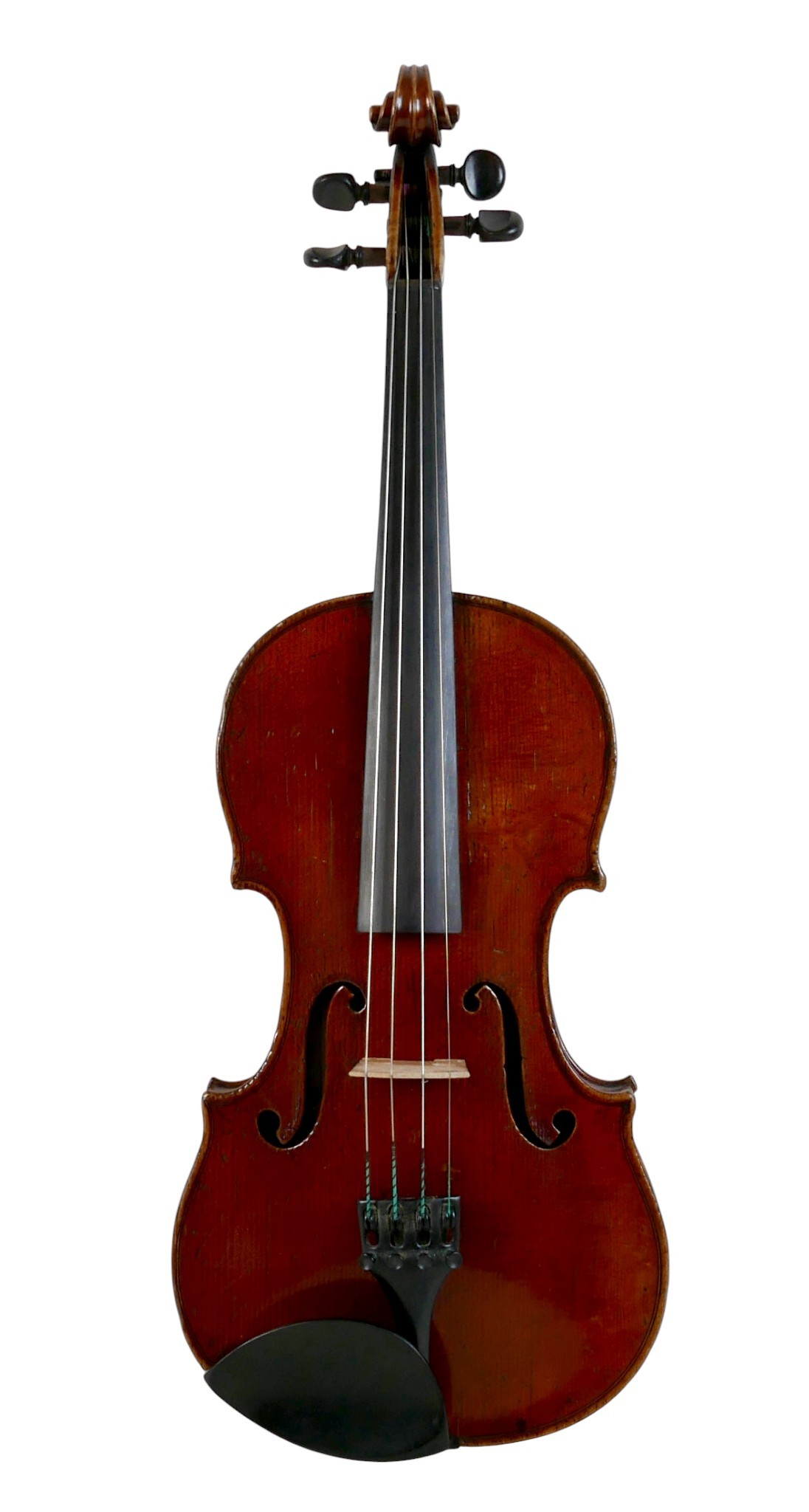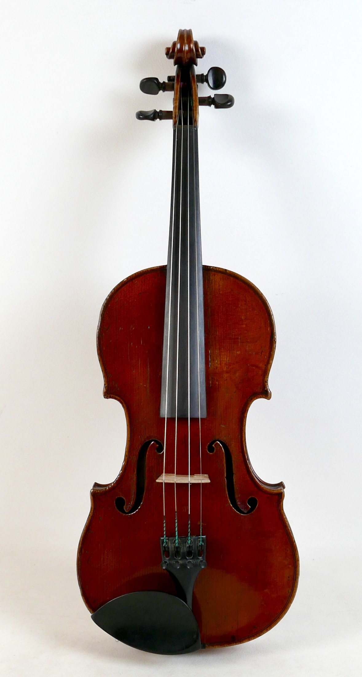 A fine 19th century French violin, with a single piece back, 14" long, bearing a label 'Gand Luthier du Conservatoire de Musique Rue Ctoir des Petits Champs 1620 Paris 1855', possibly a member of the Gand family, with bow stamped 'W-SEITERT', in a brown leather and fully fitted hard carry case.