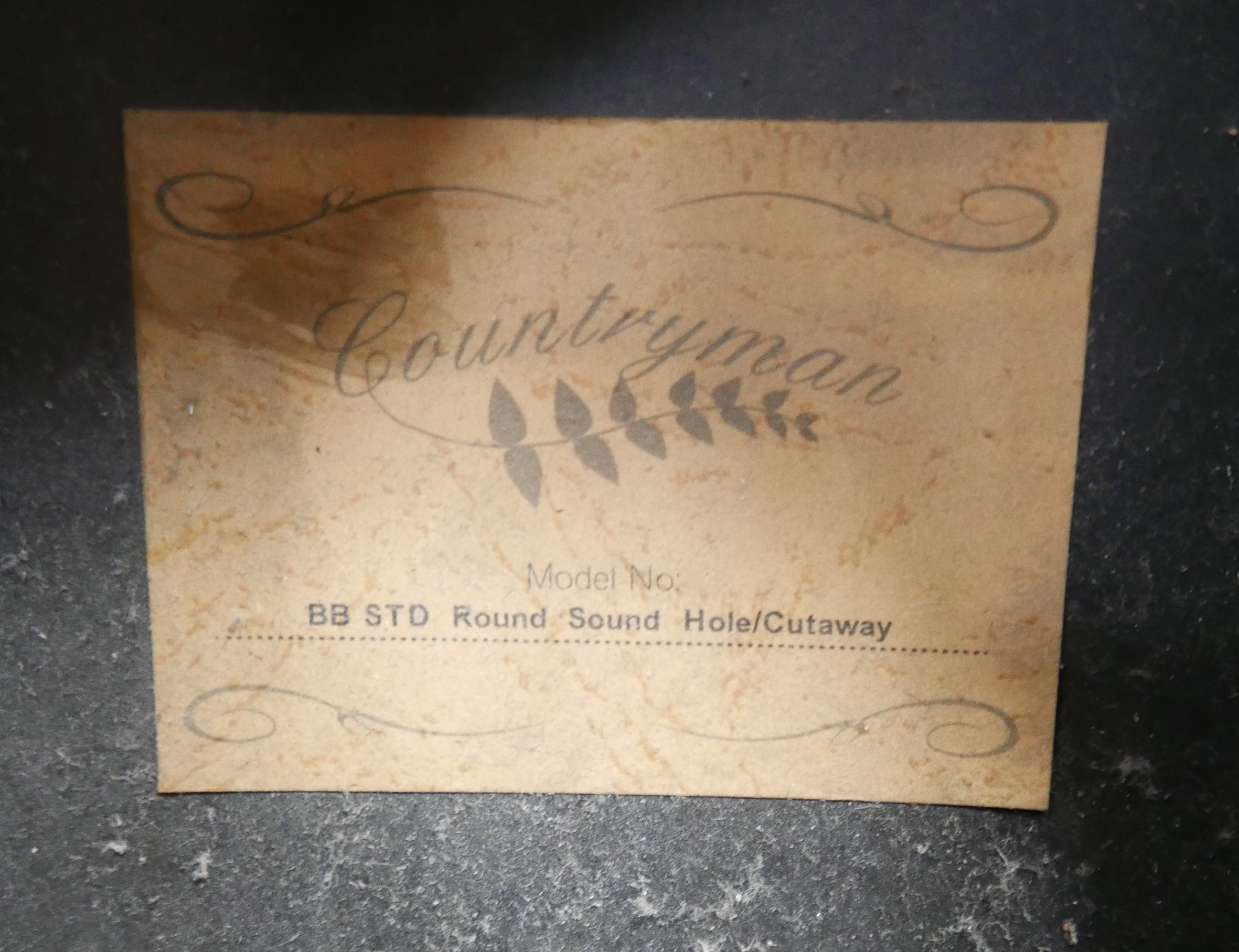 A Countryman electro-acoustic guitar, with battery powered pre-amp and an unbranded guitar cable. (2)