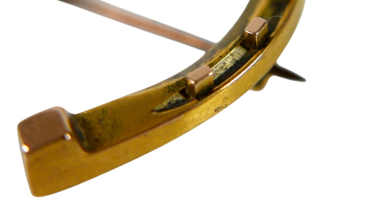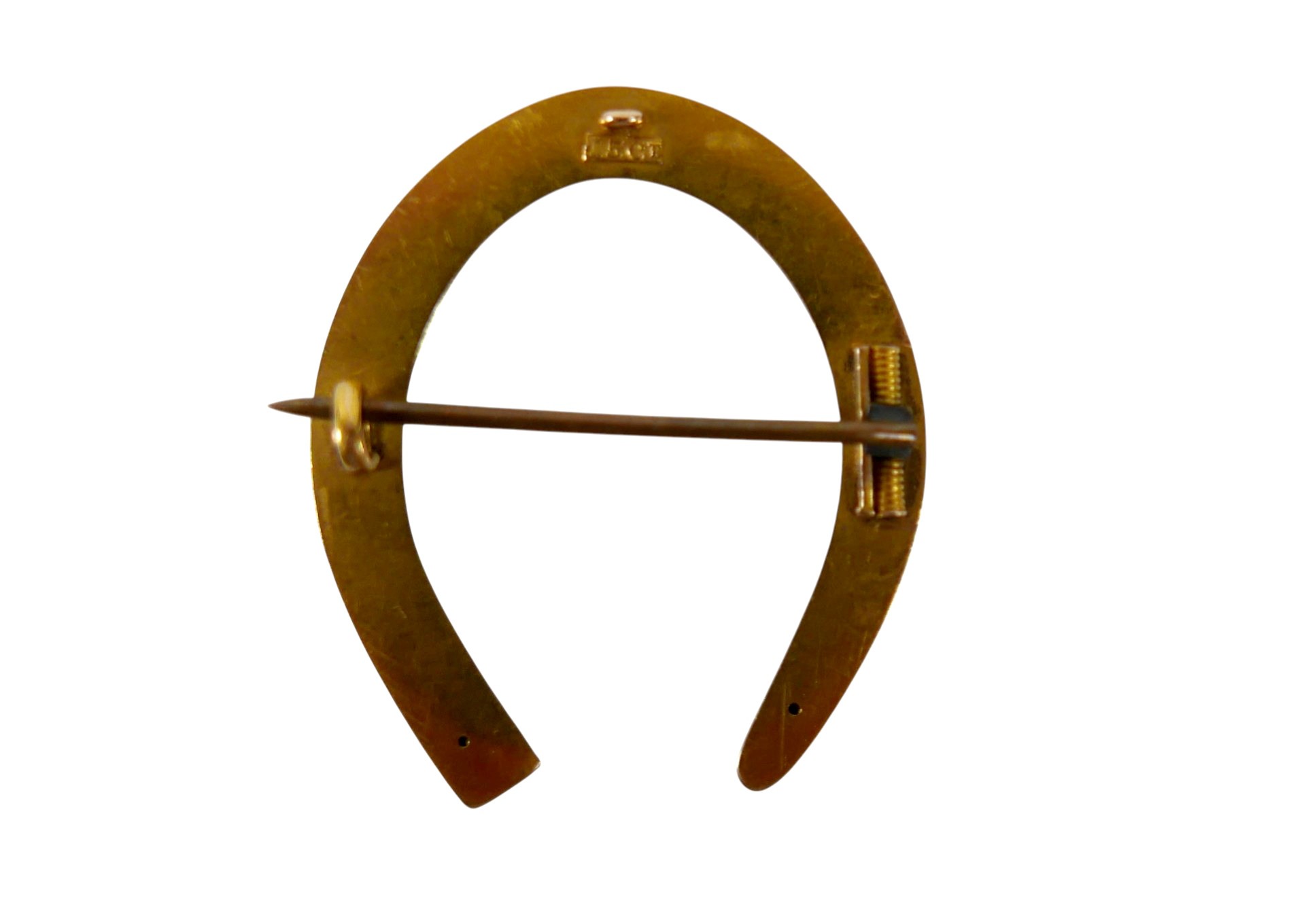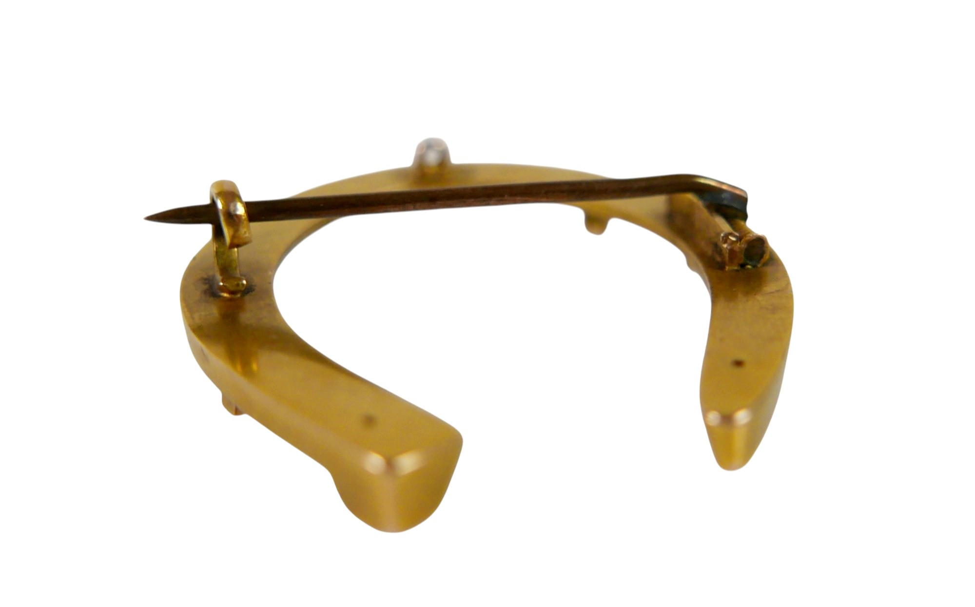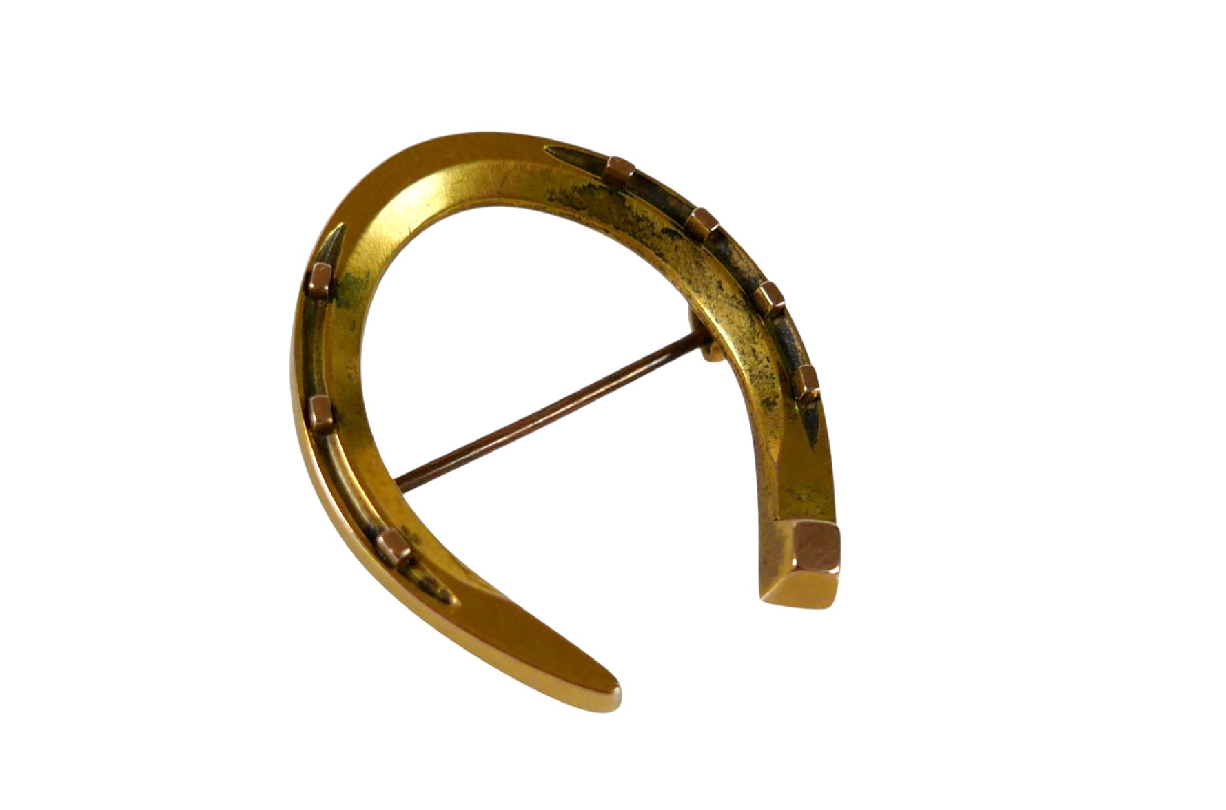 A 15ct gold horseshoe brooch, with base metal pin, 3.8g over...