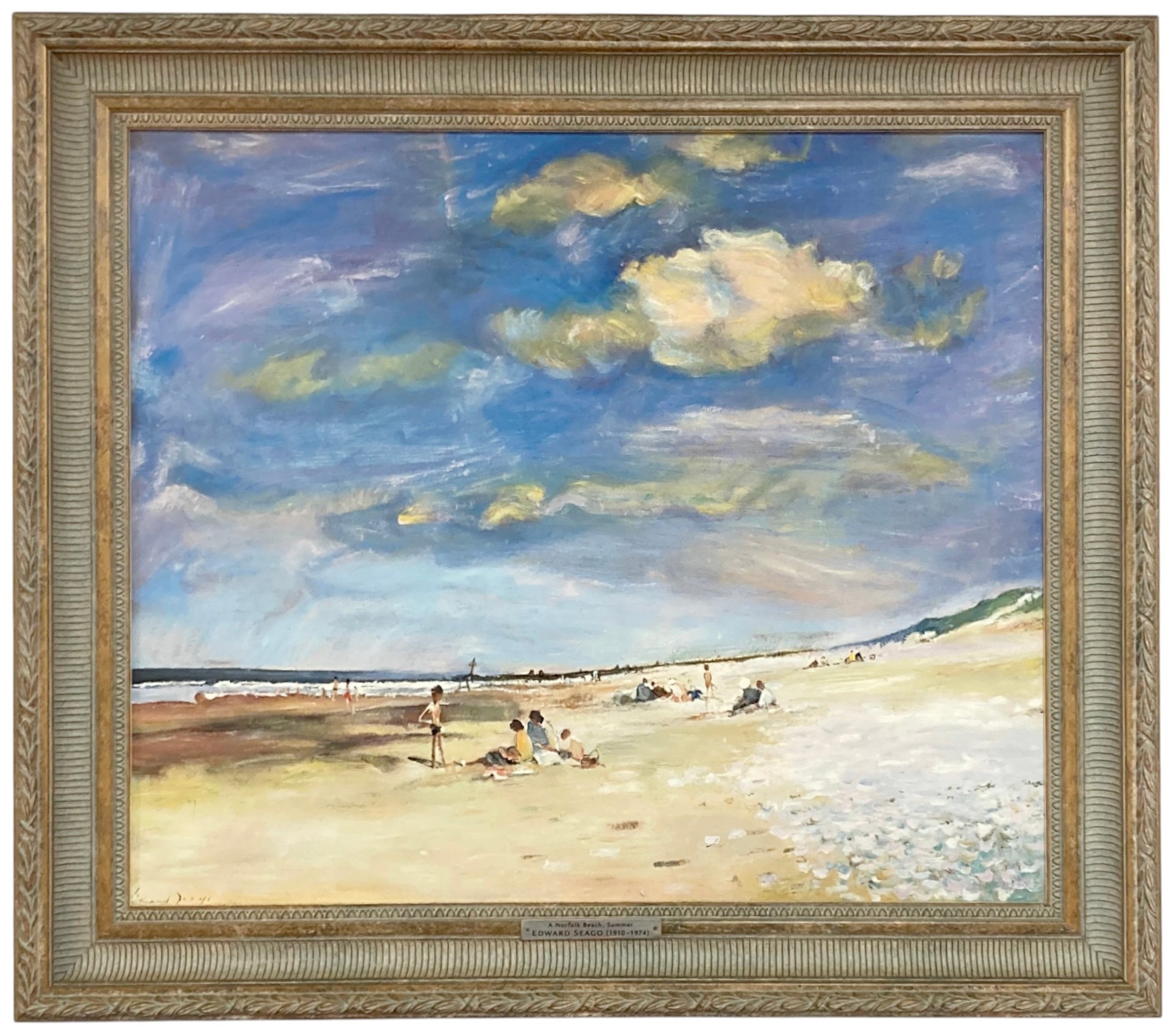 Edward Seago (English, 1910-1974): 'Norfolk Beach in Summer', signed lower left, oil on canvas, with title plaque to frame and labelled verso, 48 by 58.5cm, framed, 62.5 by 72.5cm.