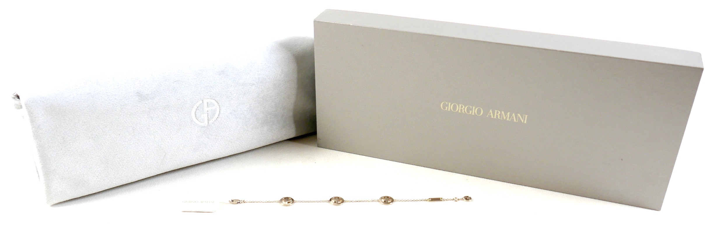 A Giorgio Armani 18ct gold bracelet, with G logo lozenges, lobster clasp, with box and fabric bag, as new with tags, 6.6g.
