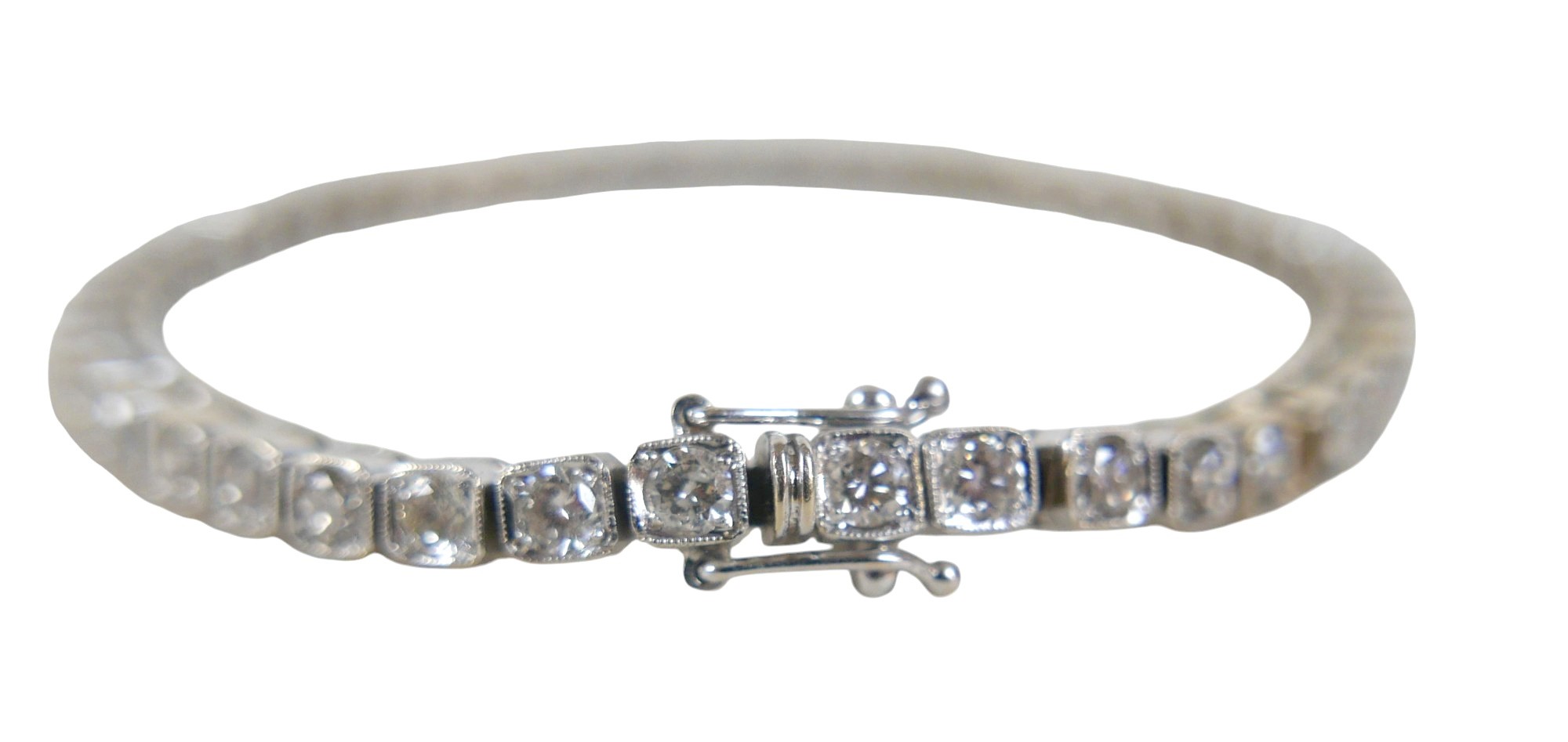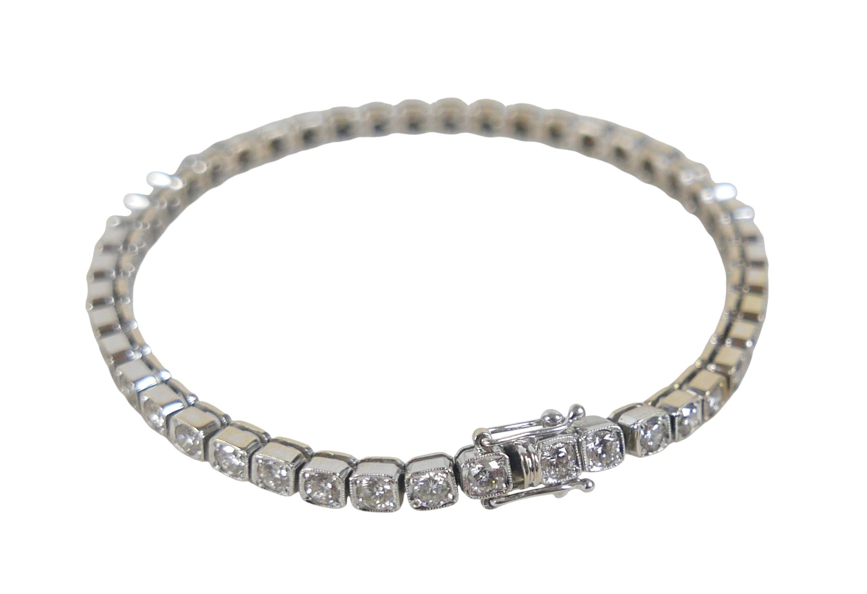 An 18ct white gold diamond tennis bracelet, forty-five round...