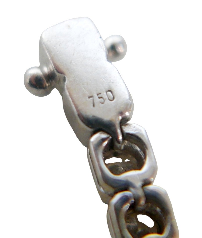 An 18ct white gold diamond tennis bracelet, forty-five round cuts diamonds, each stone approximately 2.5mm diameter, bracelet length 18.5cm long, together with spare links 1cm long, 18.2g overall.