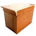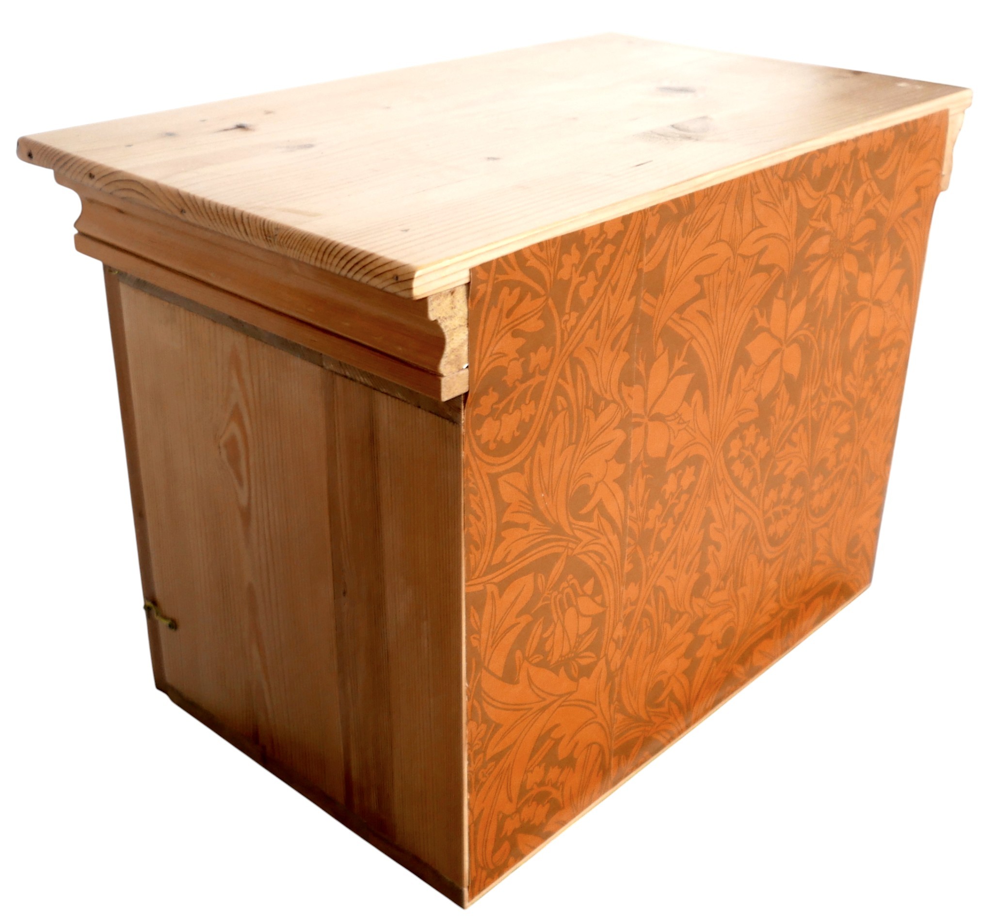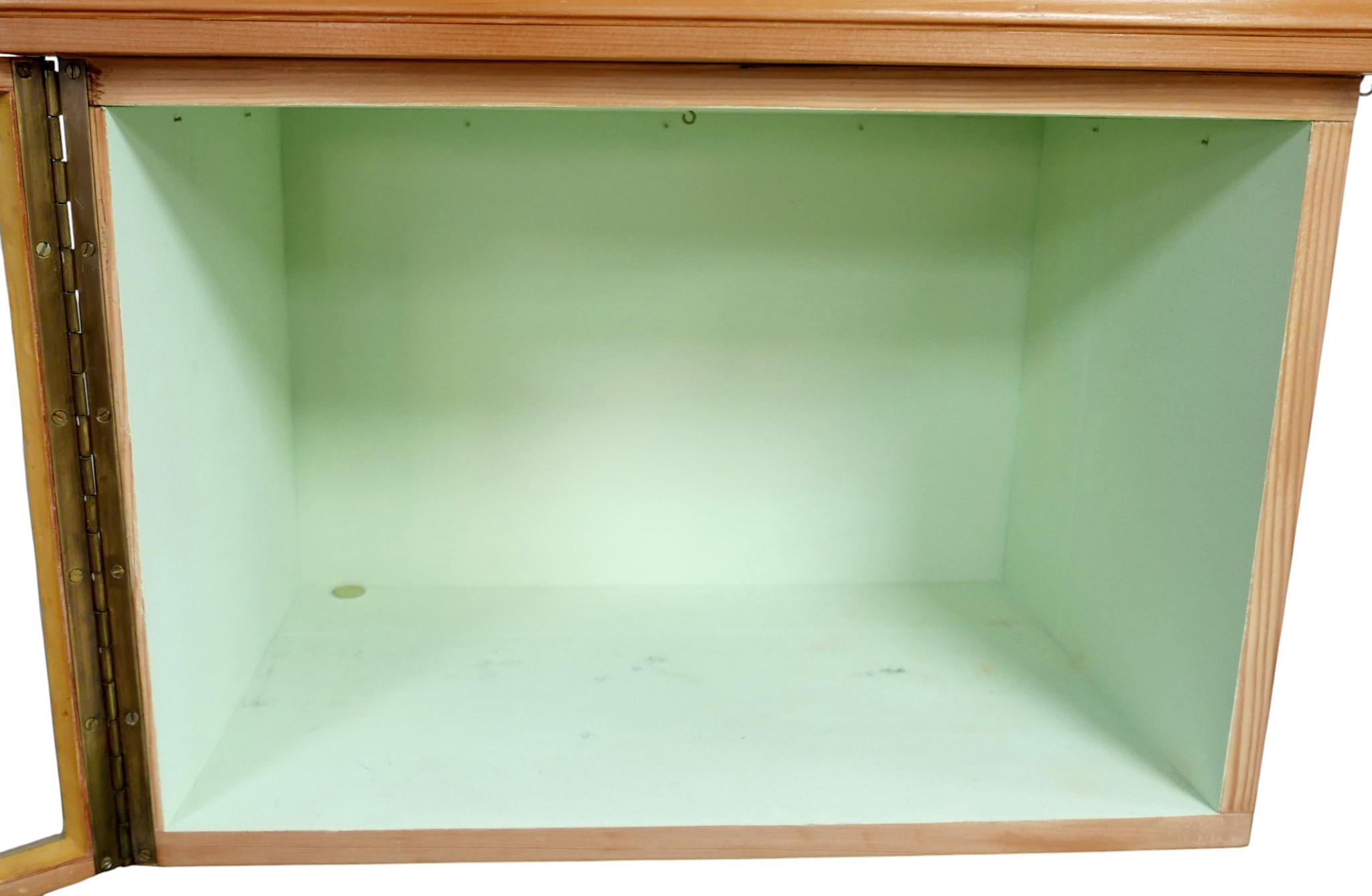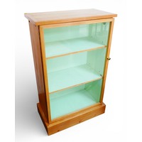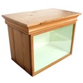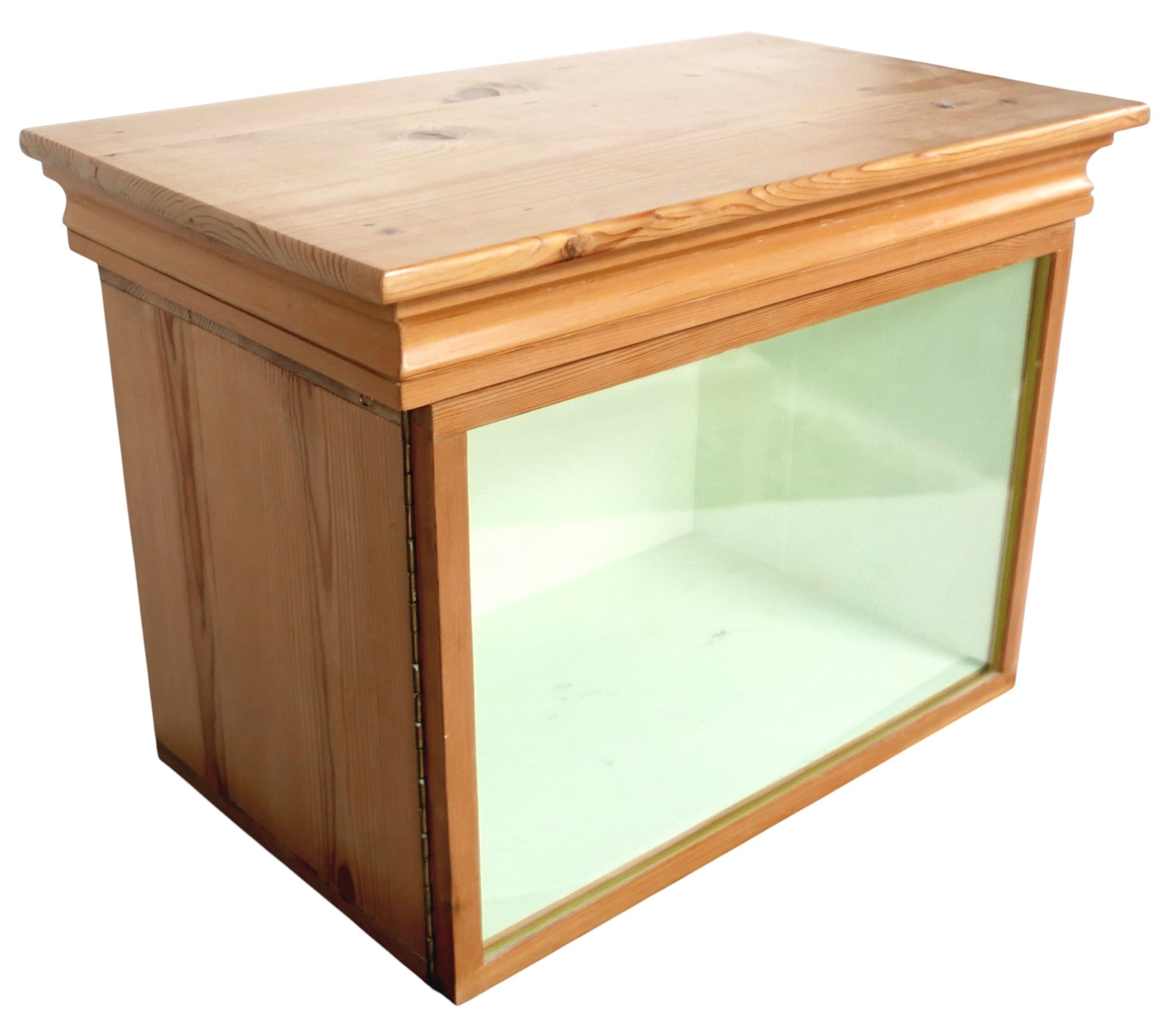 A pine doll's house display case for a single room, with hinged glazed doors, 56 by 34.5 by 42cm high.