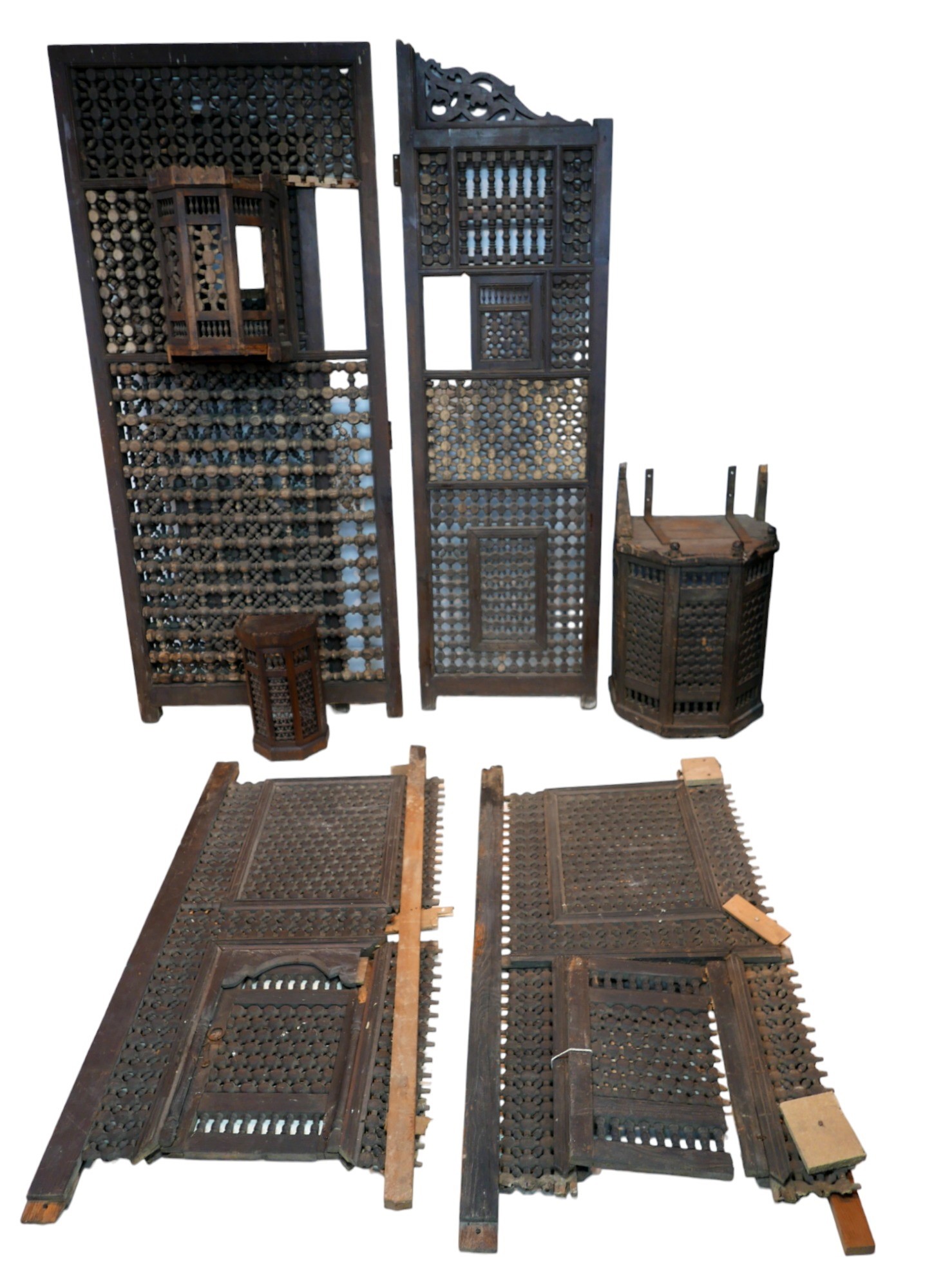 A sectional ottoman Syrian mashrabiya folding screen with in...