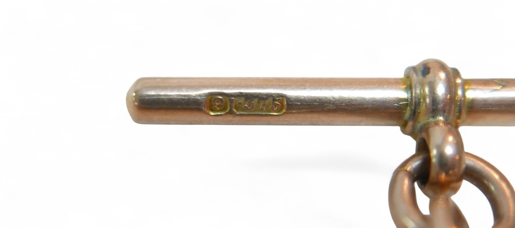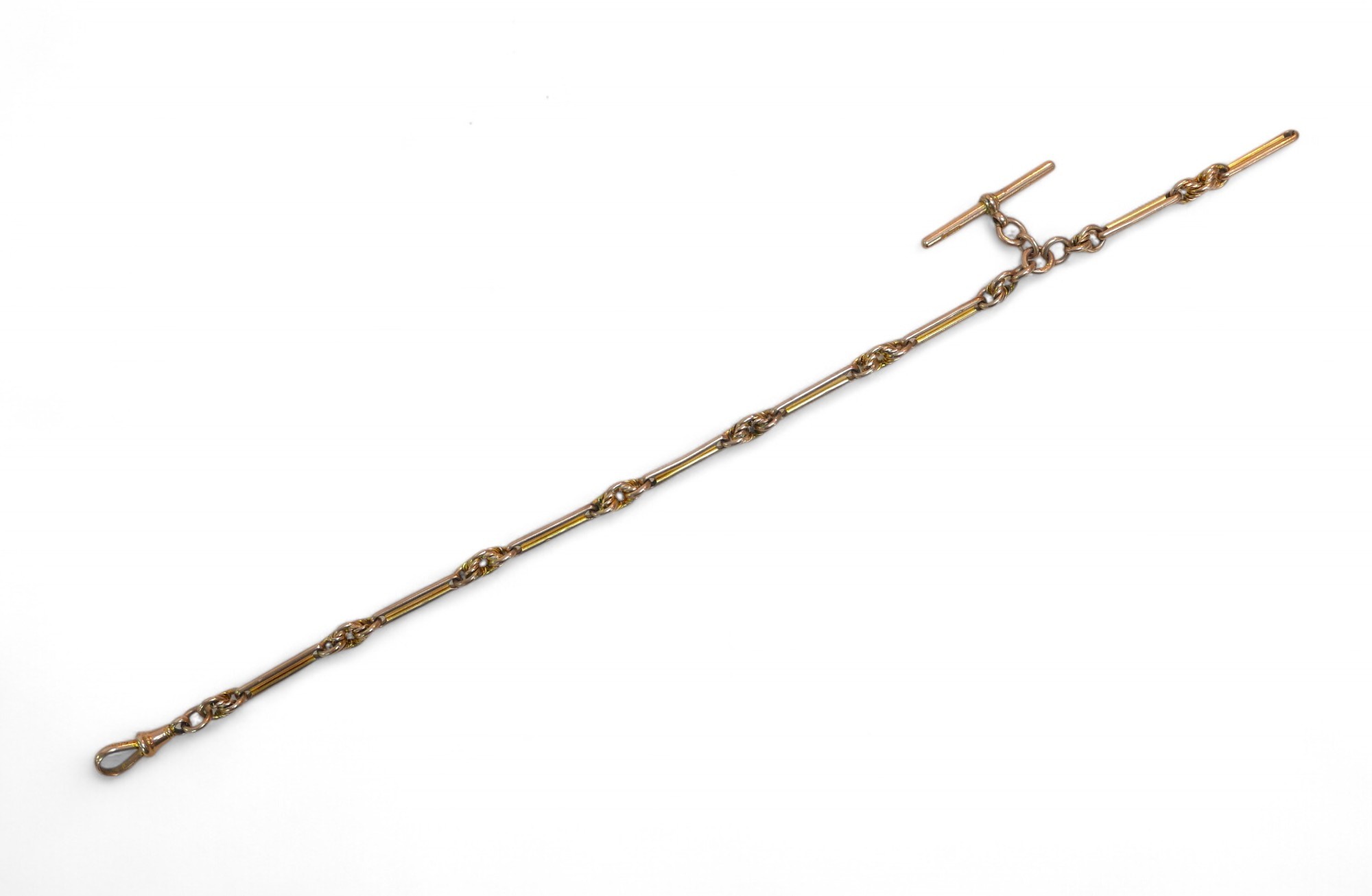 A 9ct gold fob chain with T-bar, 30cm long, 28.2g.