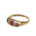 An 18ct gold red stone and diamond ring, size P, 2.1g.