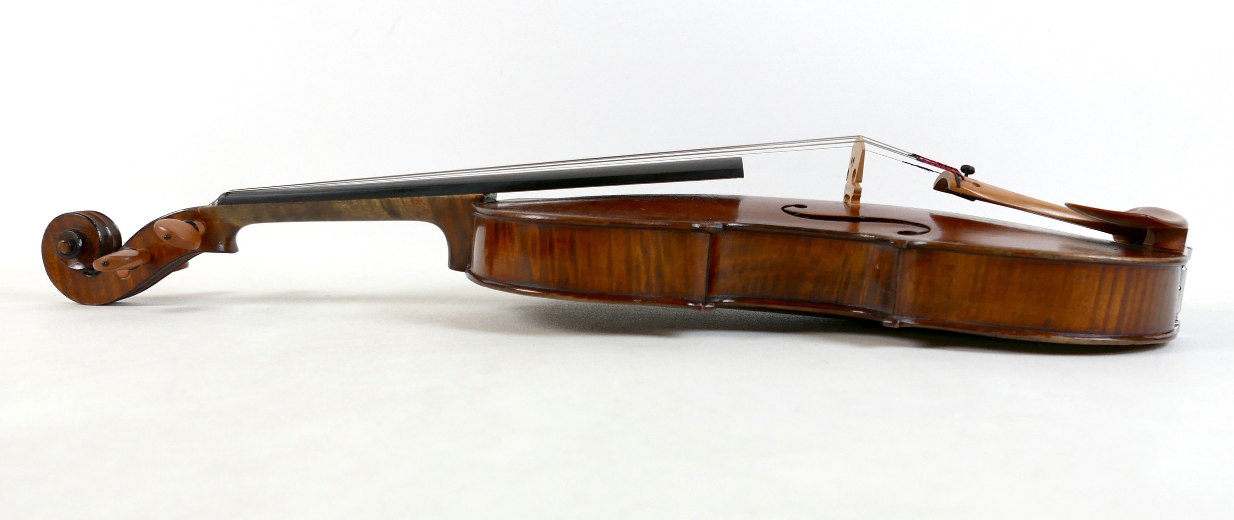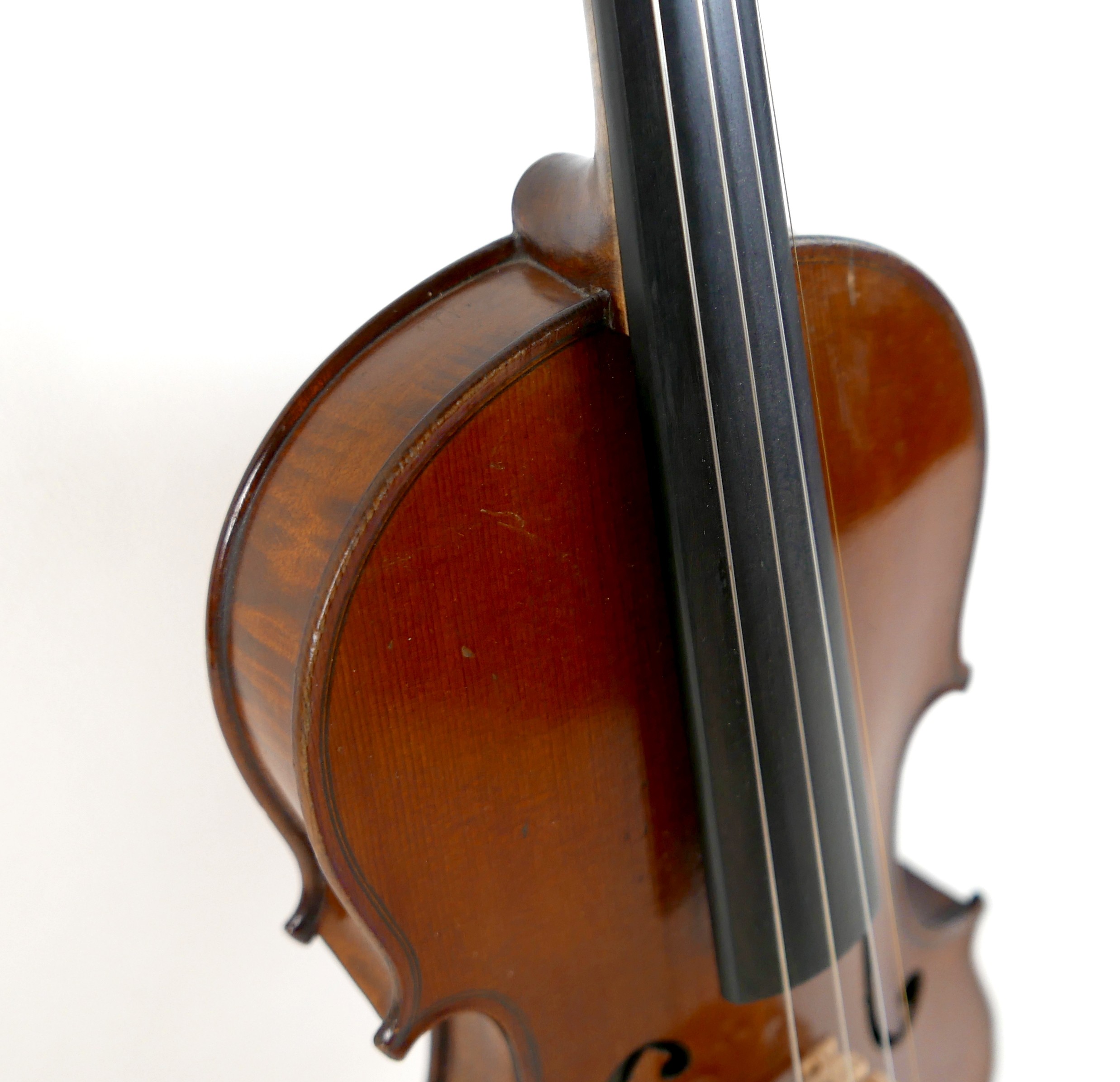 A late 19th century Mirecourt violin, two piece back, unlabe...