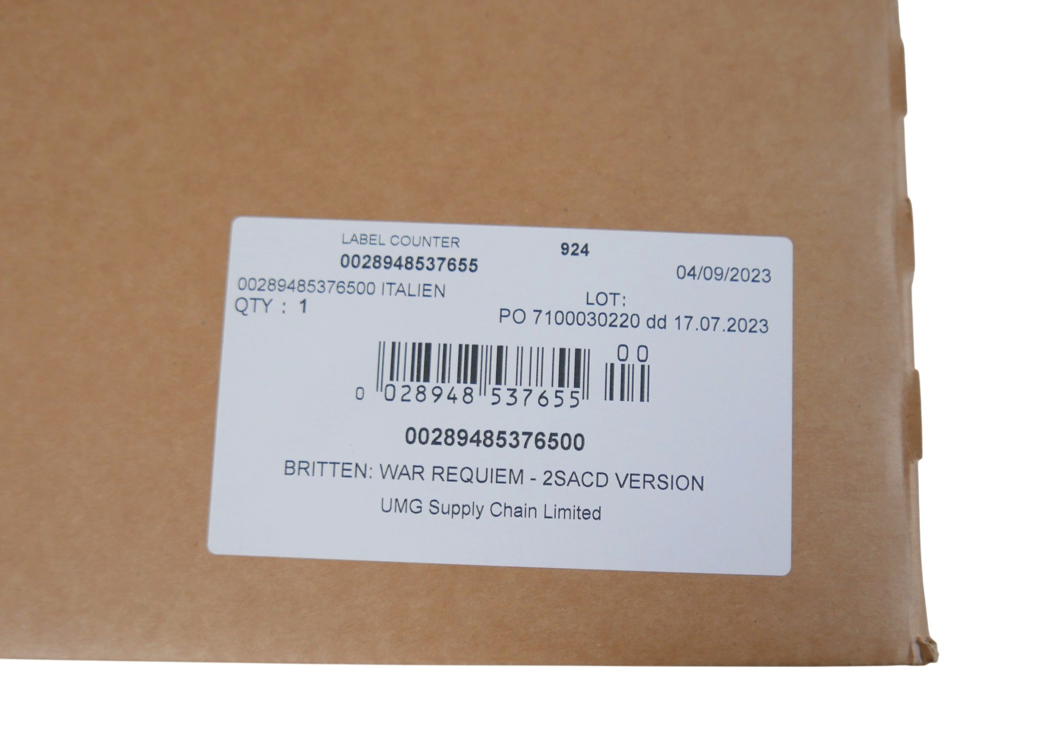 Benjamin Britten: War Requiem, SACD Super Audio CD version, 2 SACD discs, Decca recording, in original factory packaging.