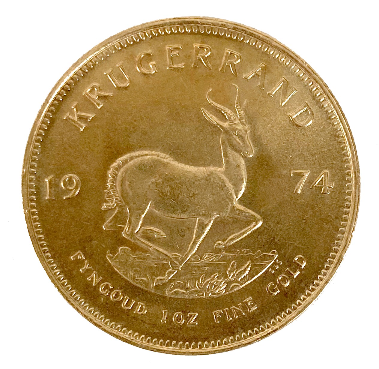 A 22ct gold South African Krugerrand, 1974, 'Fyngoud 1oz Fin...