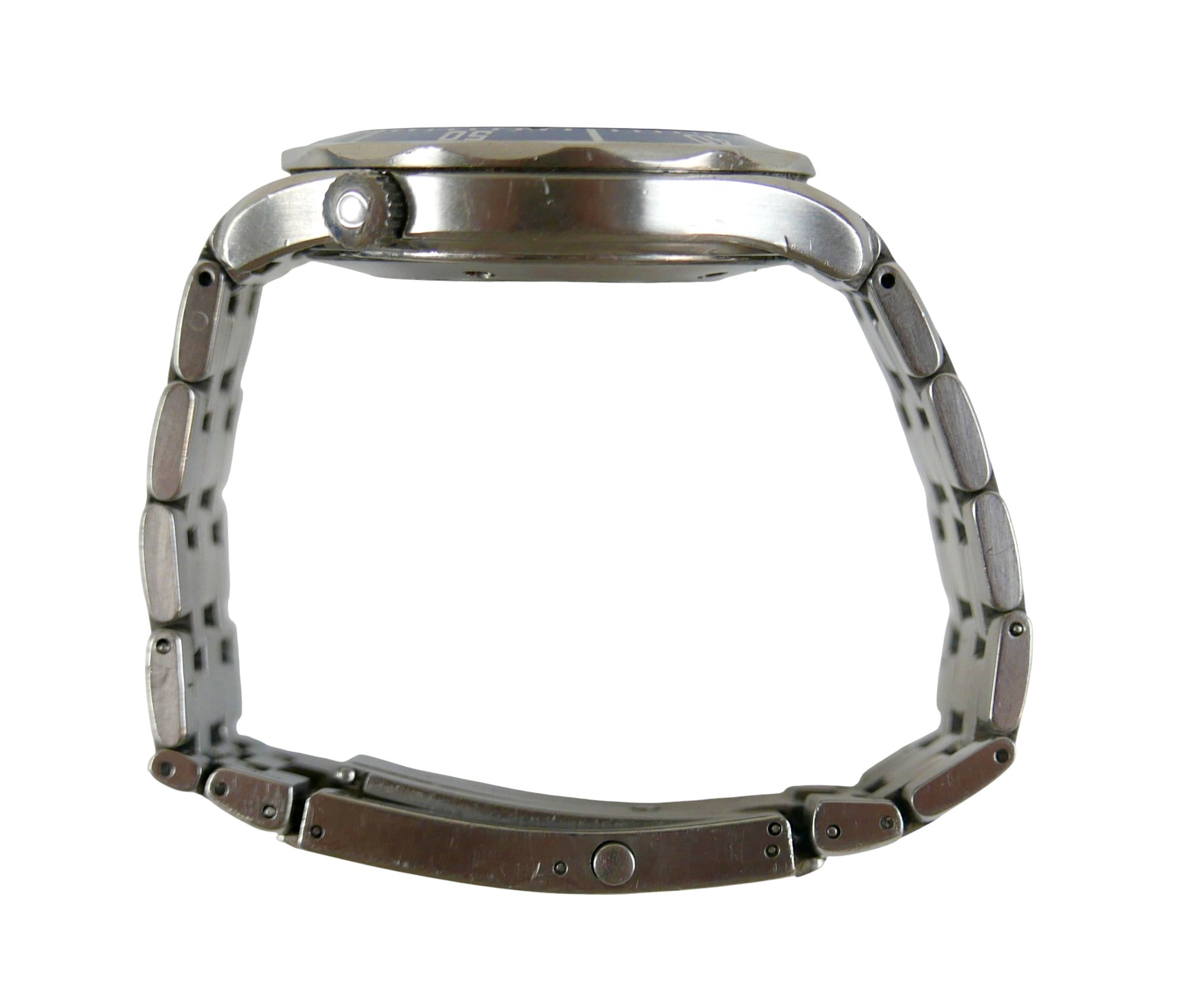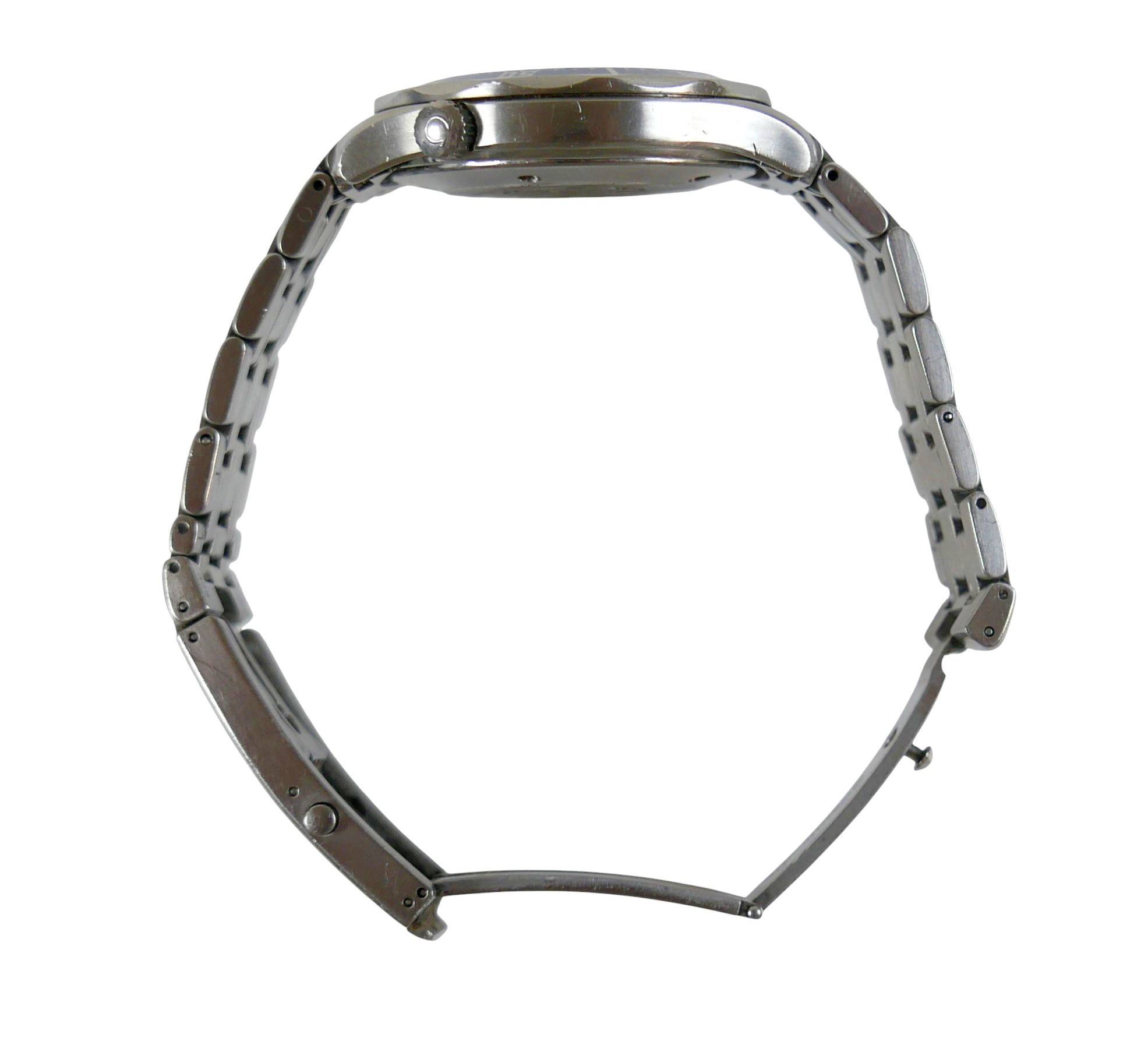 Notes: in working condition, crown screws in well, hands and date advance, winds smoothly, keeps time across 1hr test, however Batemans cannot guarantee its continued operation.