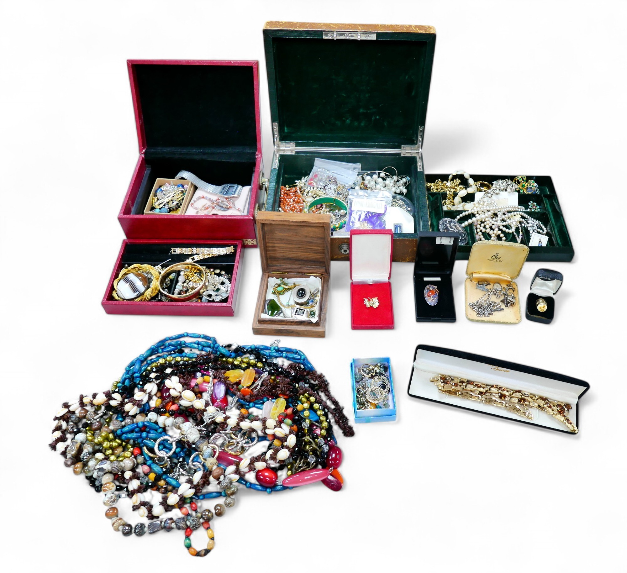 A large collection of costume jewellery, including, necklace...