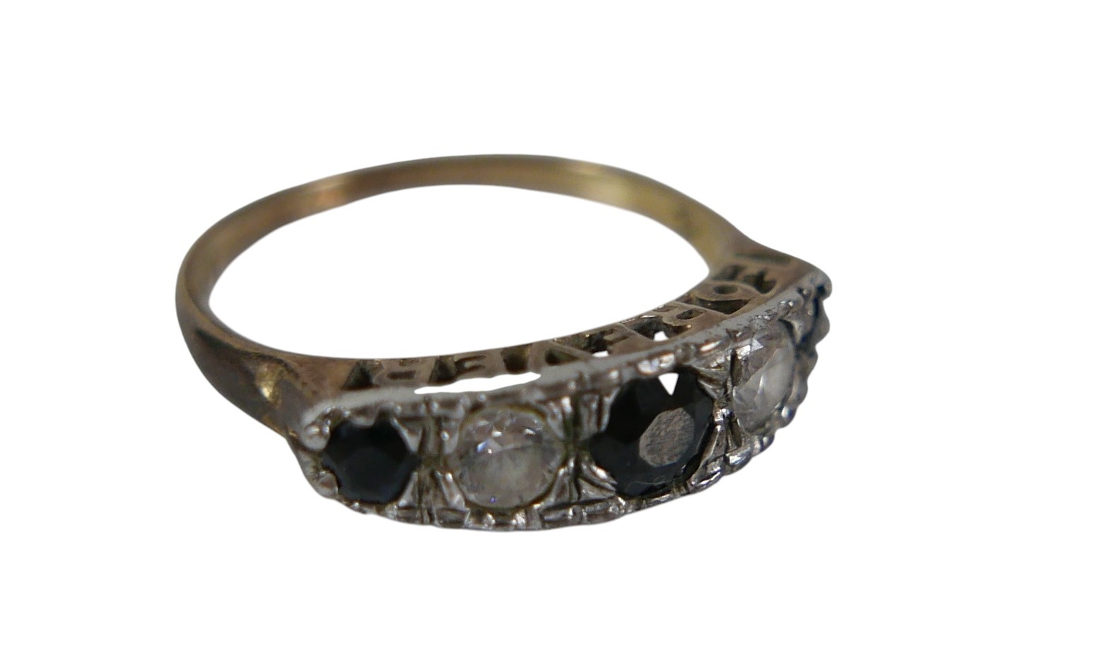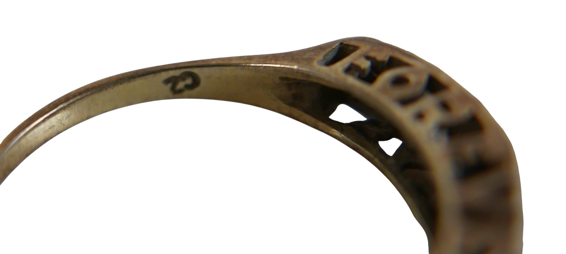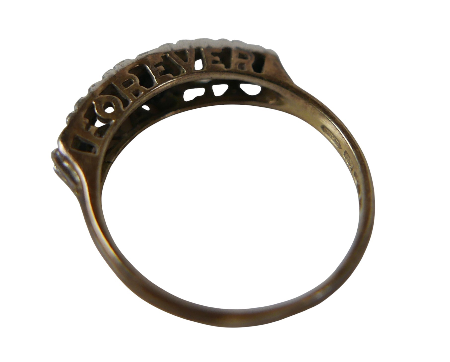 A gold and silver "Forever" ring a broken 9ct chain and a pa...
