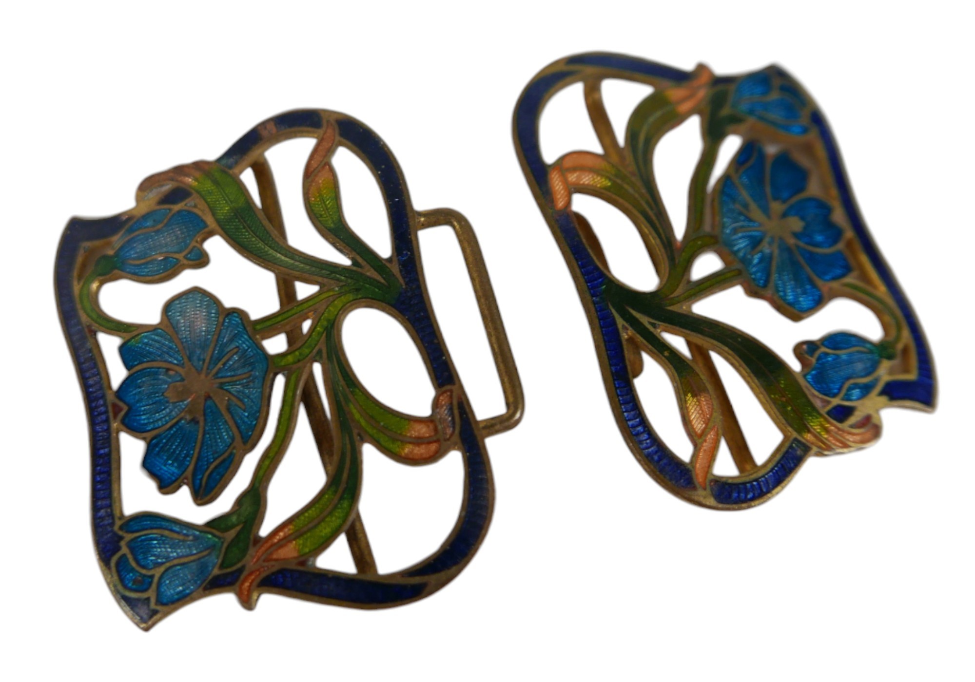 Six pieces of enamel jewellery comprising a nurses buckle, s...