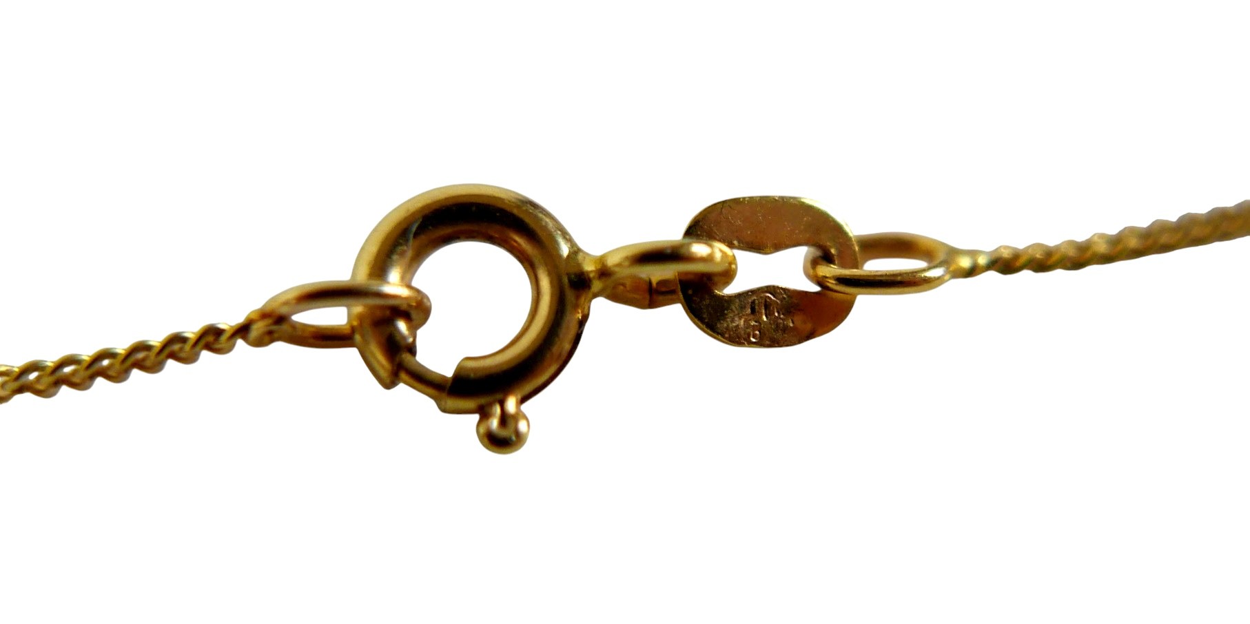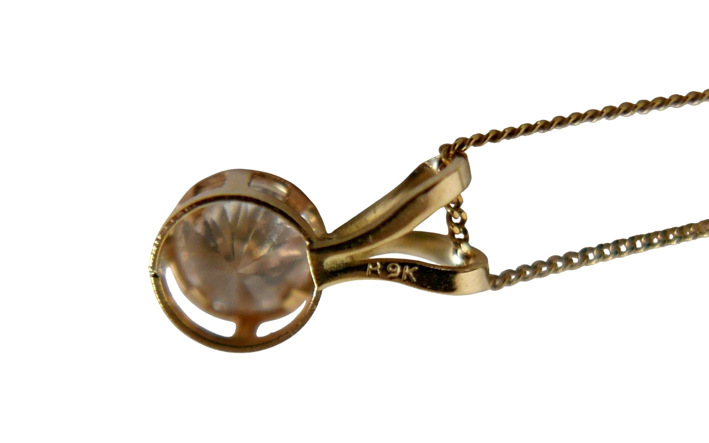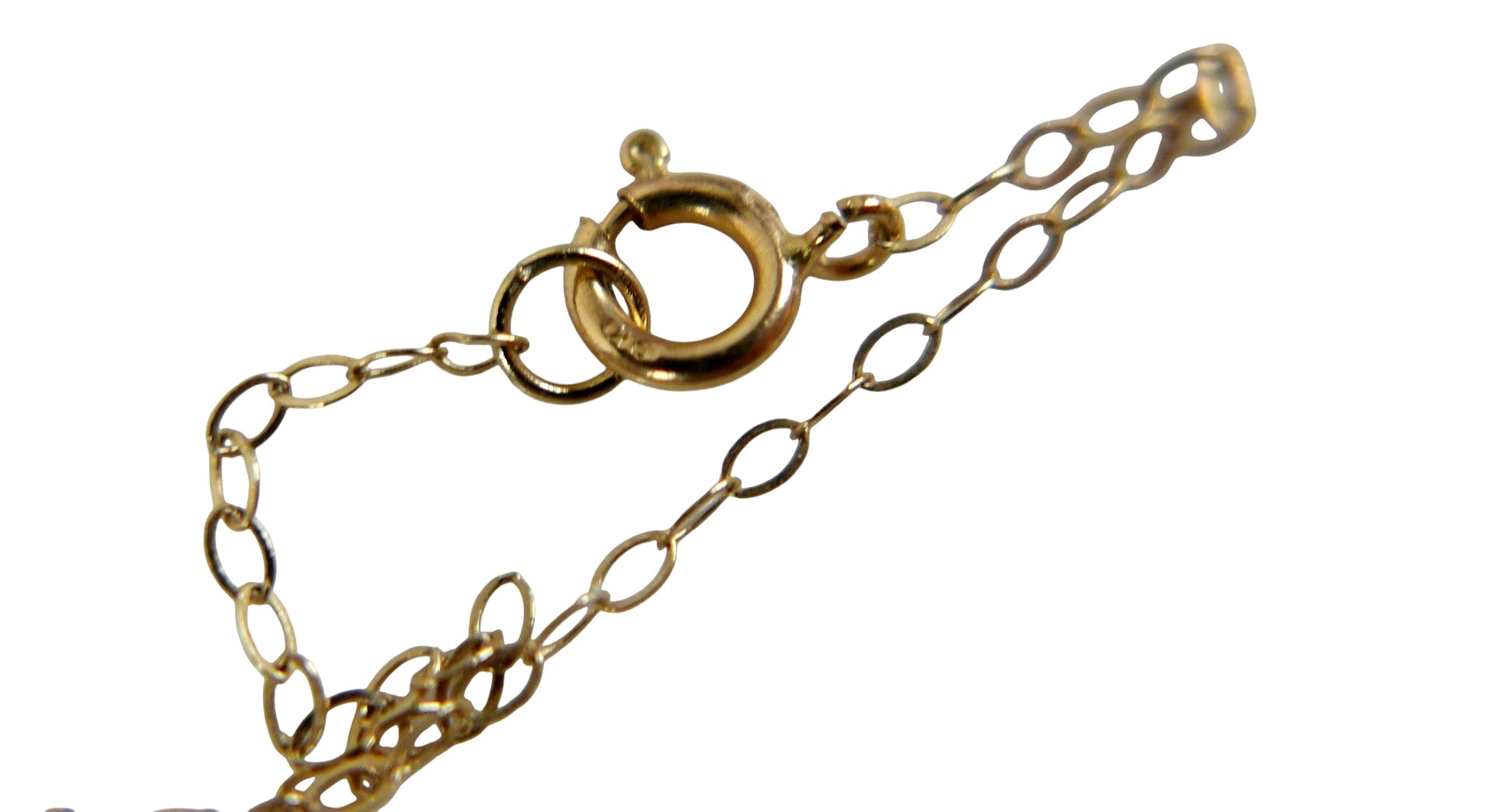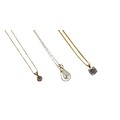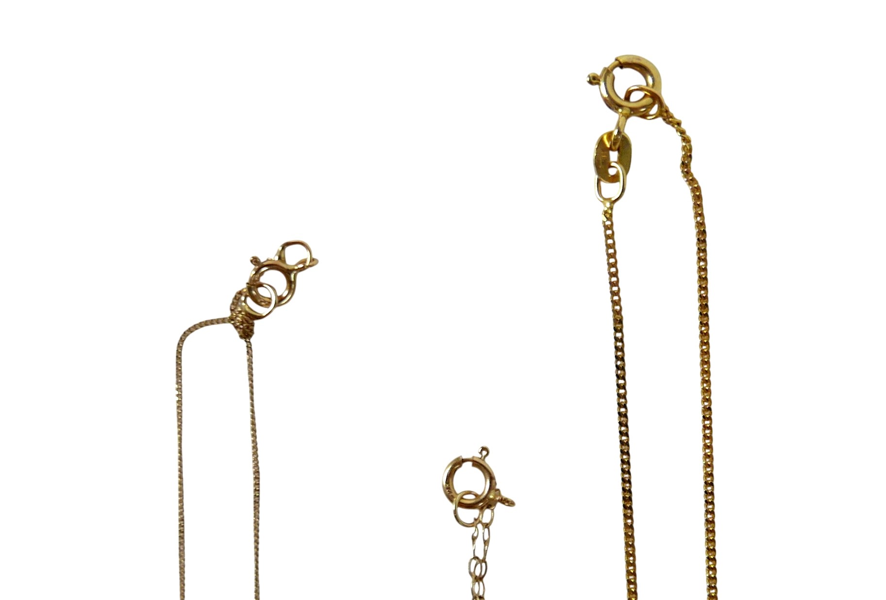 Three 9ct gold chain necklaces, two with white stone pendant...