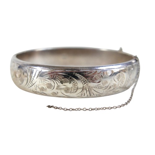 A small group of jewellery, comprising a silver hinged bangl...