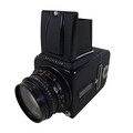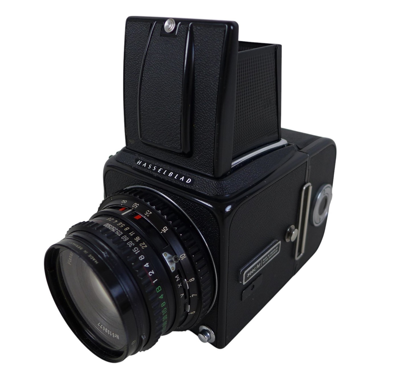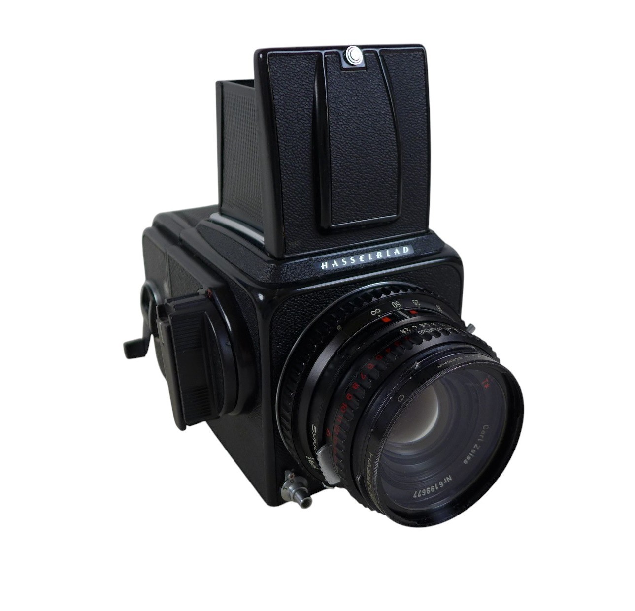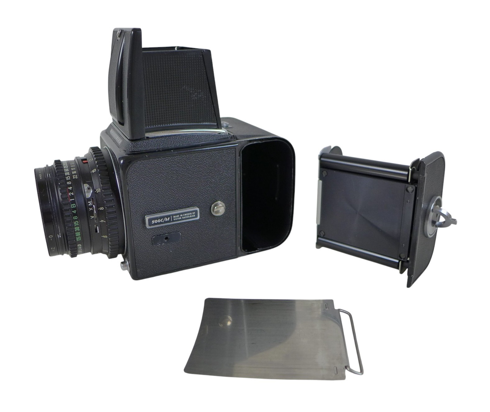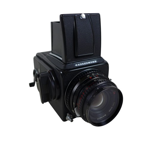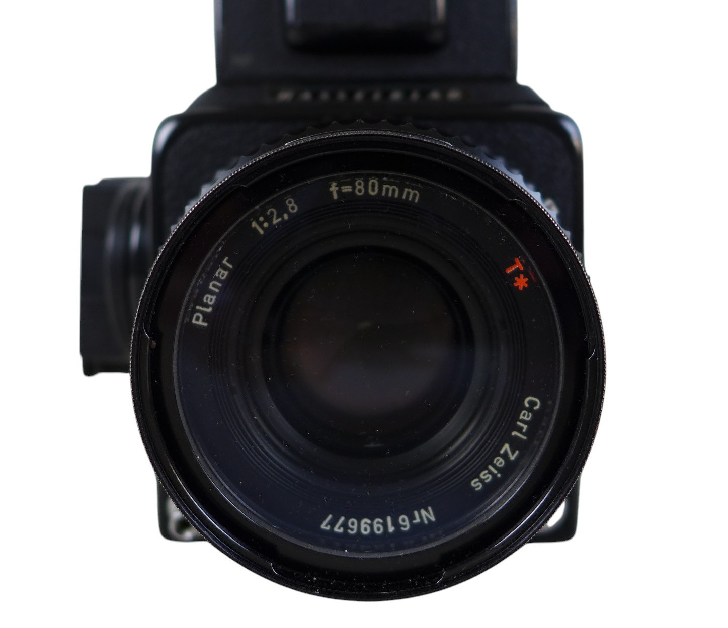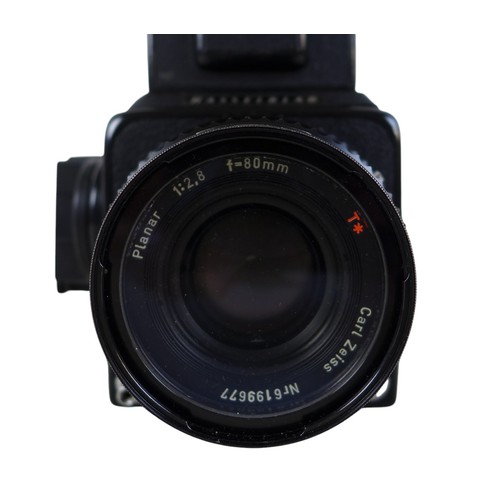 A Hasselblad 500C/M Camera, serial number UE 1235897 with Carl Zeiss T* 80mm f/2.8 Planar lens, serial no 6199677.
