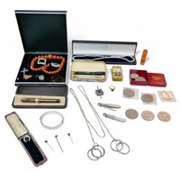 A collection of costume jewellery and other items, including...