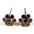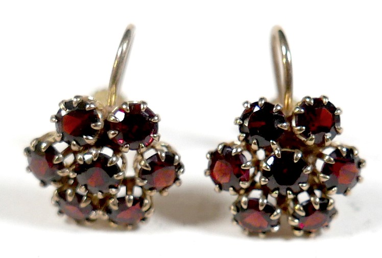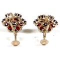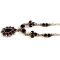 A 9ct yellow gold garnet necklace and a pair of 9ct yellow g...