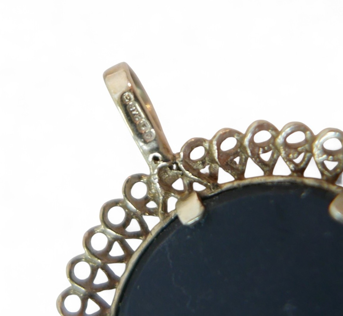 A collection of 9ct gold jewellery, comprising a hardstone a...
