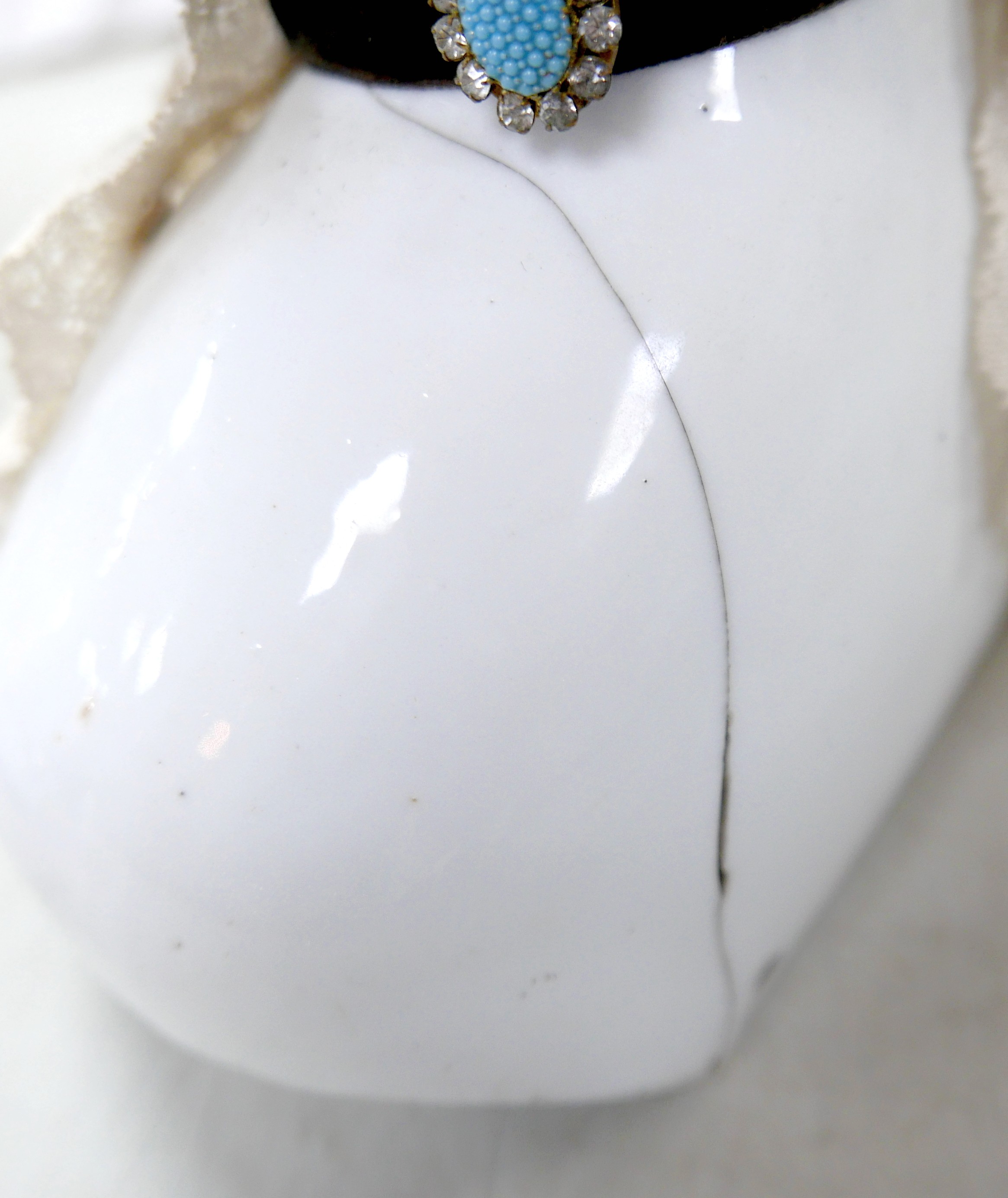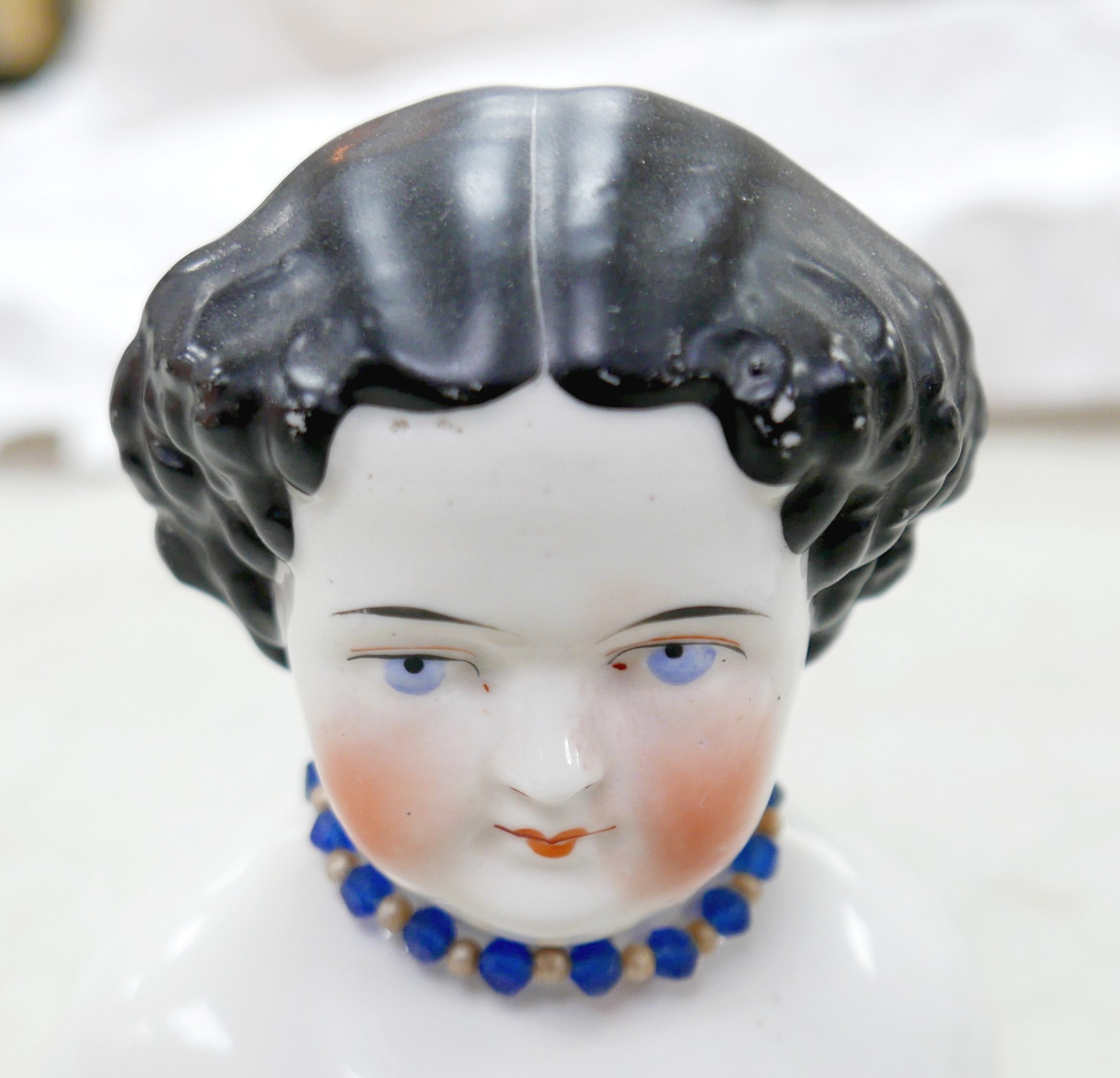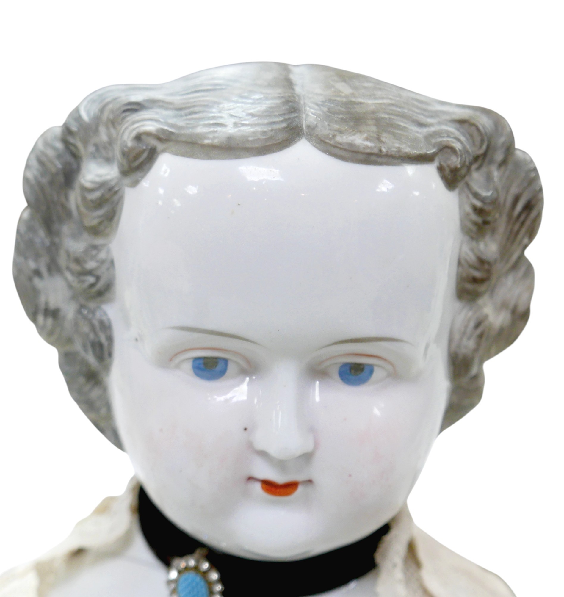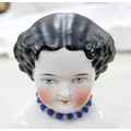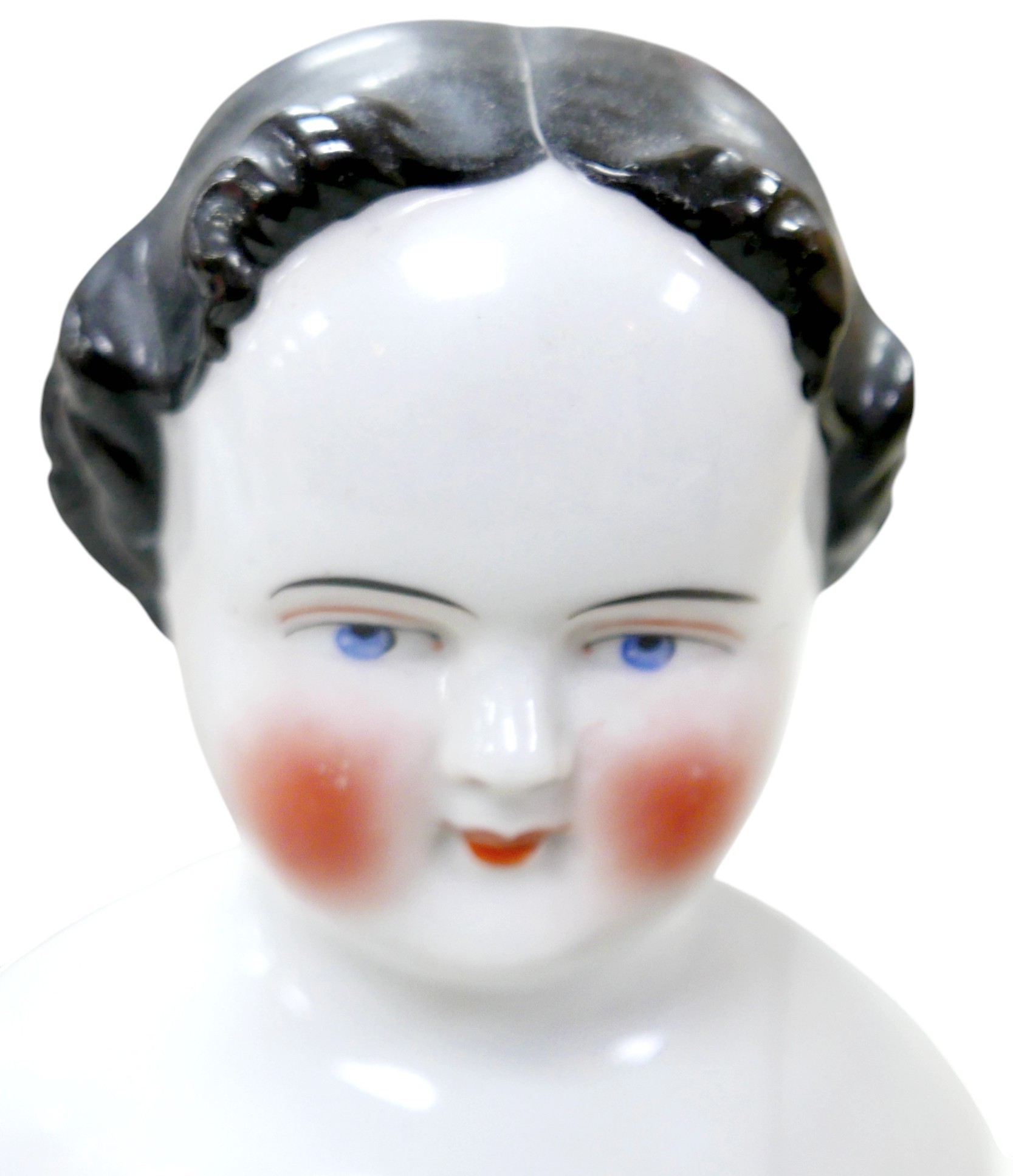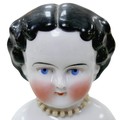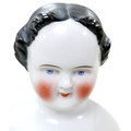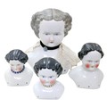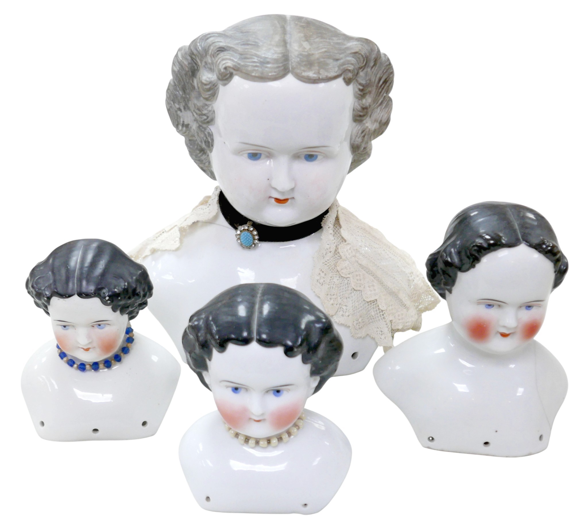 Four 19th century bisque dolls' shoulder-heads, all with hand painted features and middle partings the largest 9 1/4" (23.5cm) high. (4)