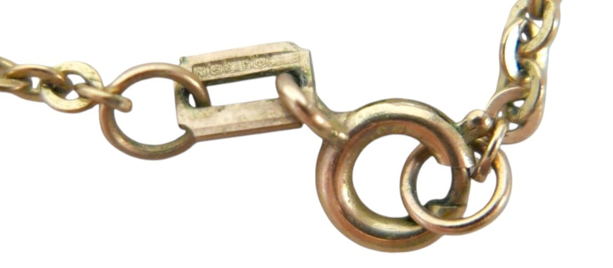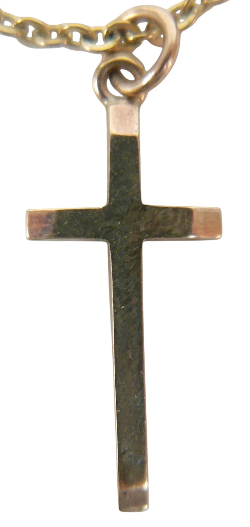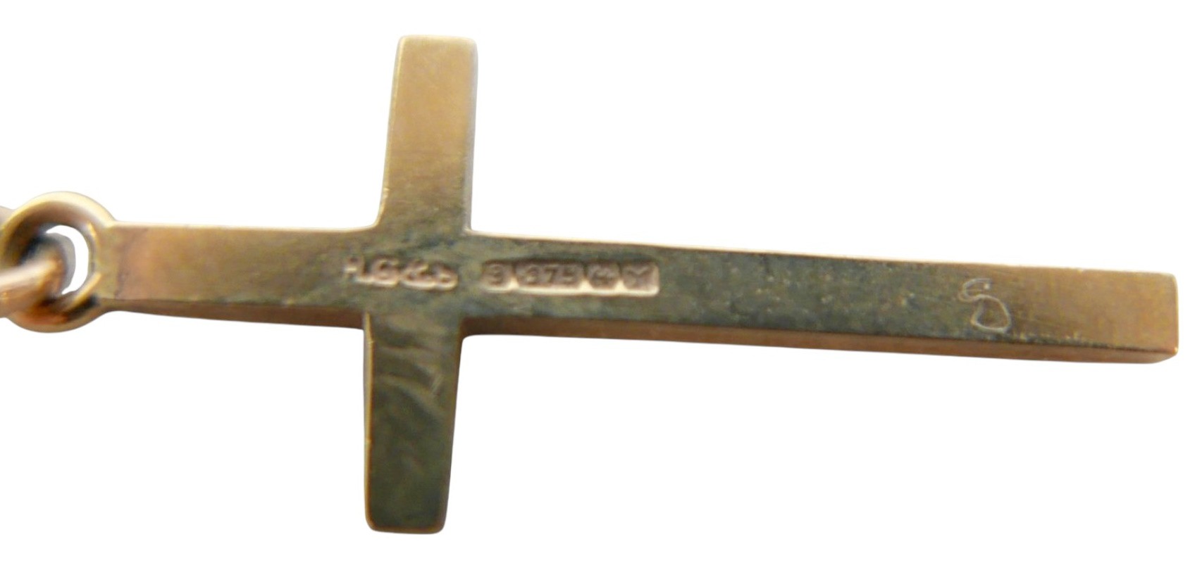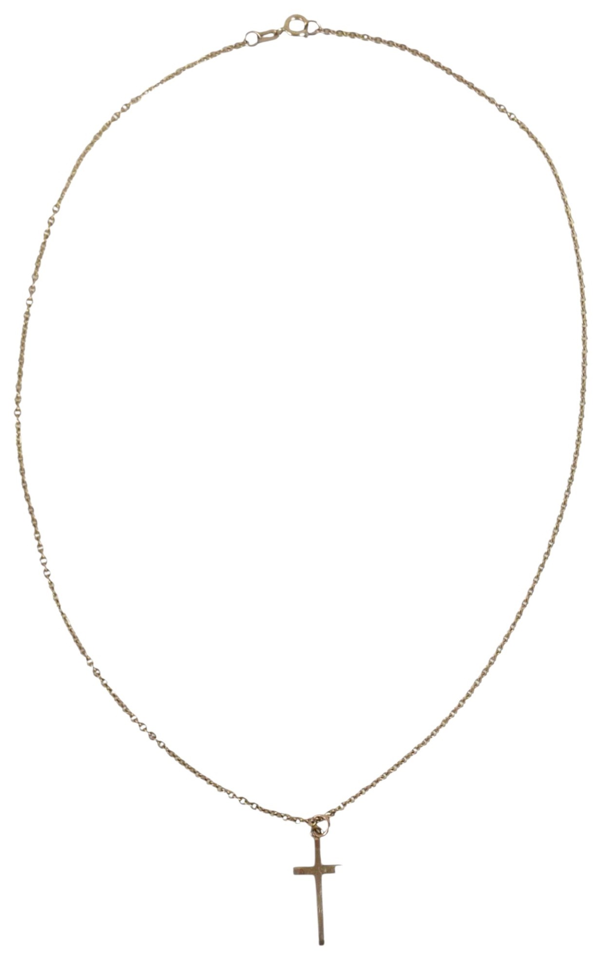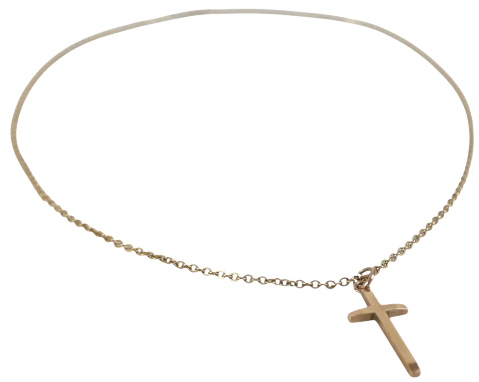 A 9ct yellow gold cross shaped pendant, on trace link chain,...