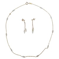 An 18ct gold, pearl and turquoise necklace, 7g, plus pair of...