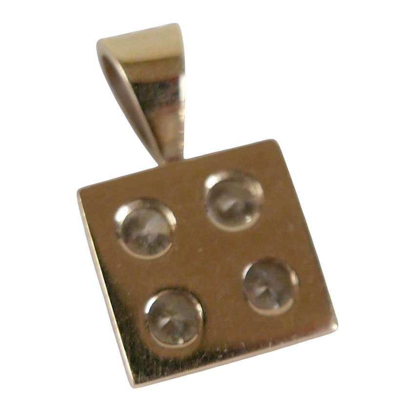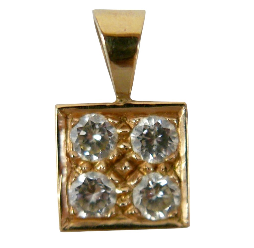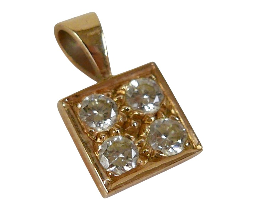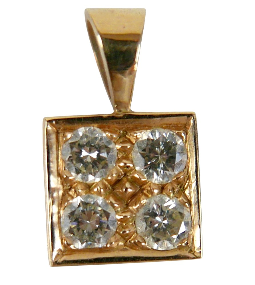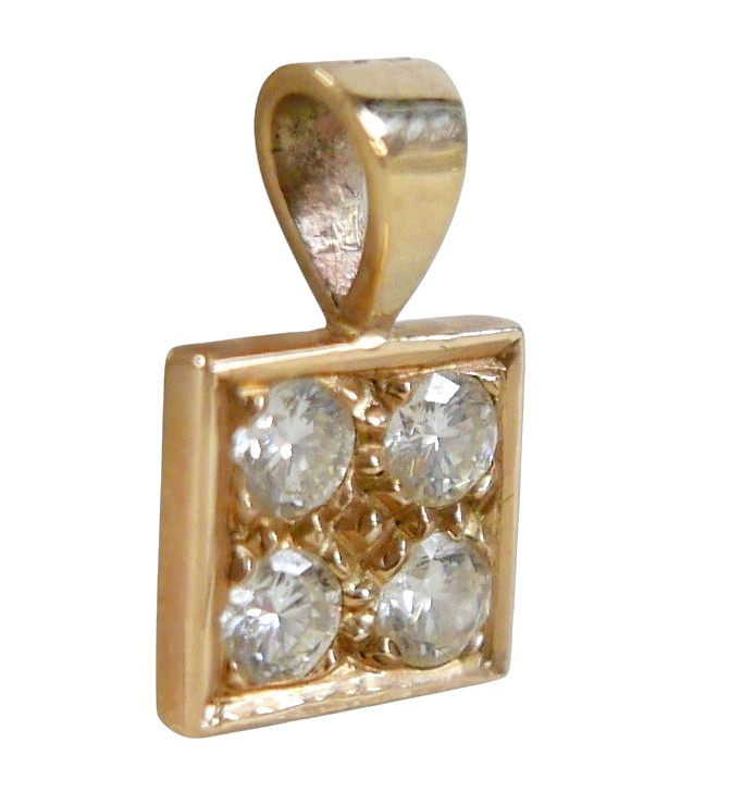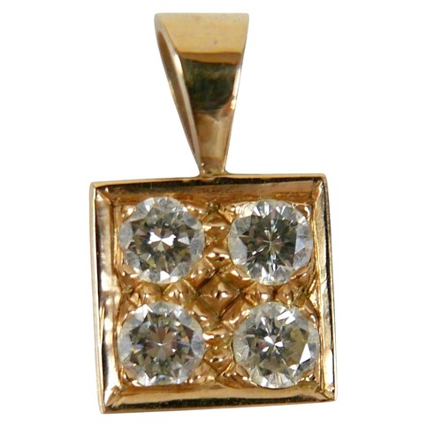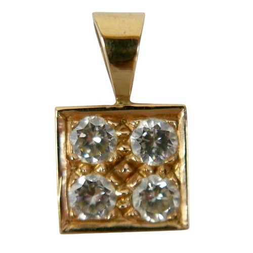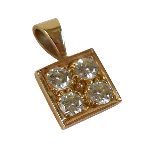 A diamond and unmarked gold pendant, square set with four round diamonds, maker JJ, 8mm x 8mm, 1.4g
