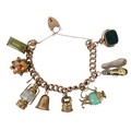 A 9ct gold charm bracelet with assorted 9ct gold charms, inc...
