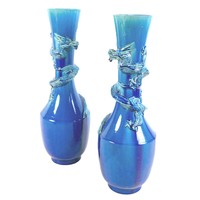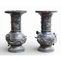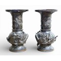 A pair of Oriental bronze dragon urns, each decorated in hig...