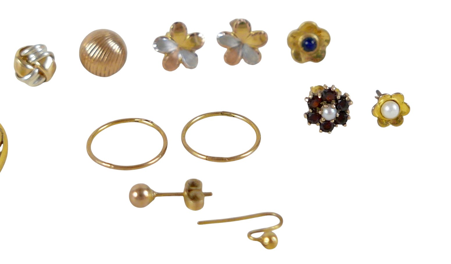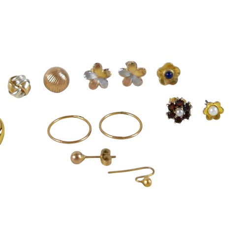 A collection of 9ct yellow gold and yellow metal earrings an...
