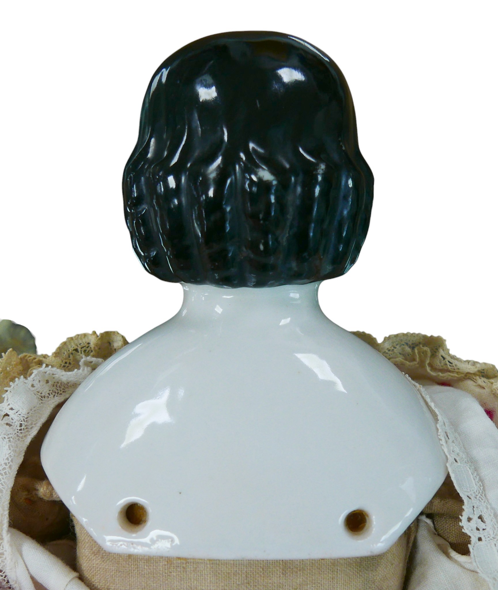 A 19th century German porcelain shoulder-head pink tinted do...