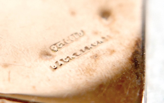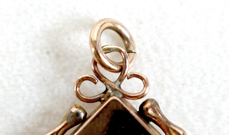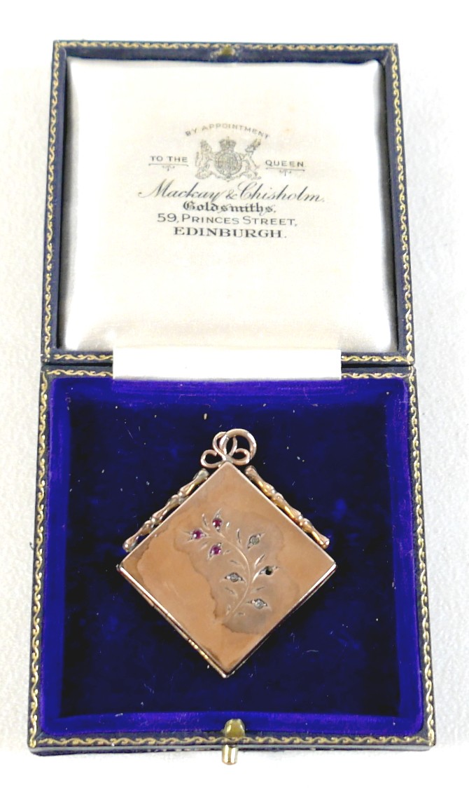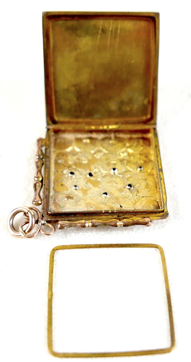 A ruby-set gilt metal locket, 3cm square, marked '9ct gold b...