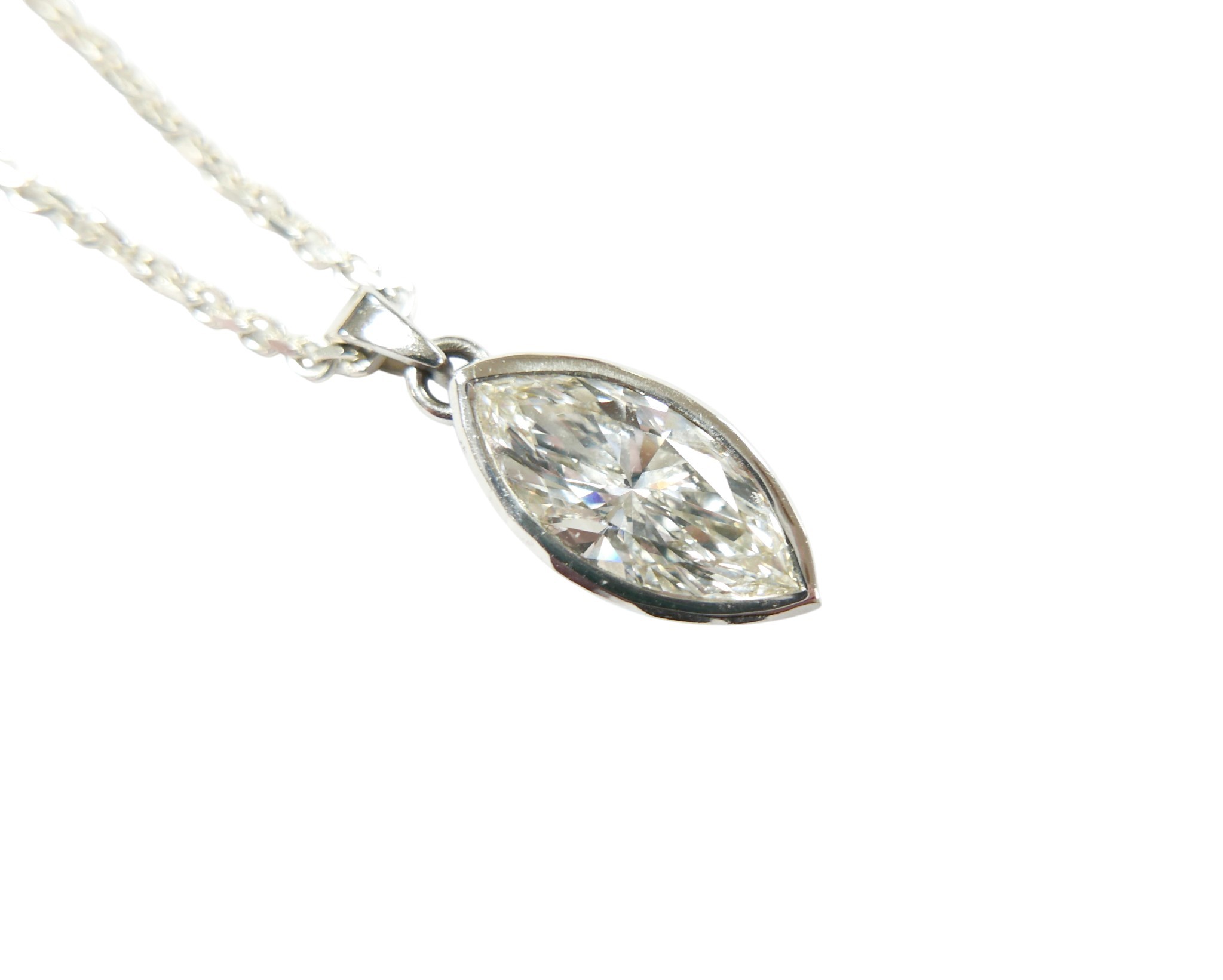 A large navette cut diamond pendant, stone 8.5 by 5 by 16mm ...