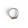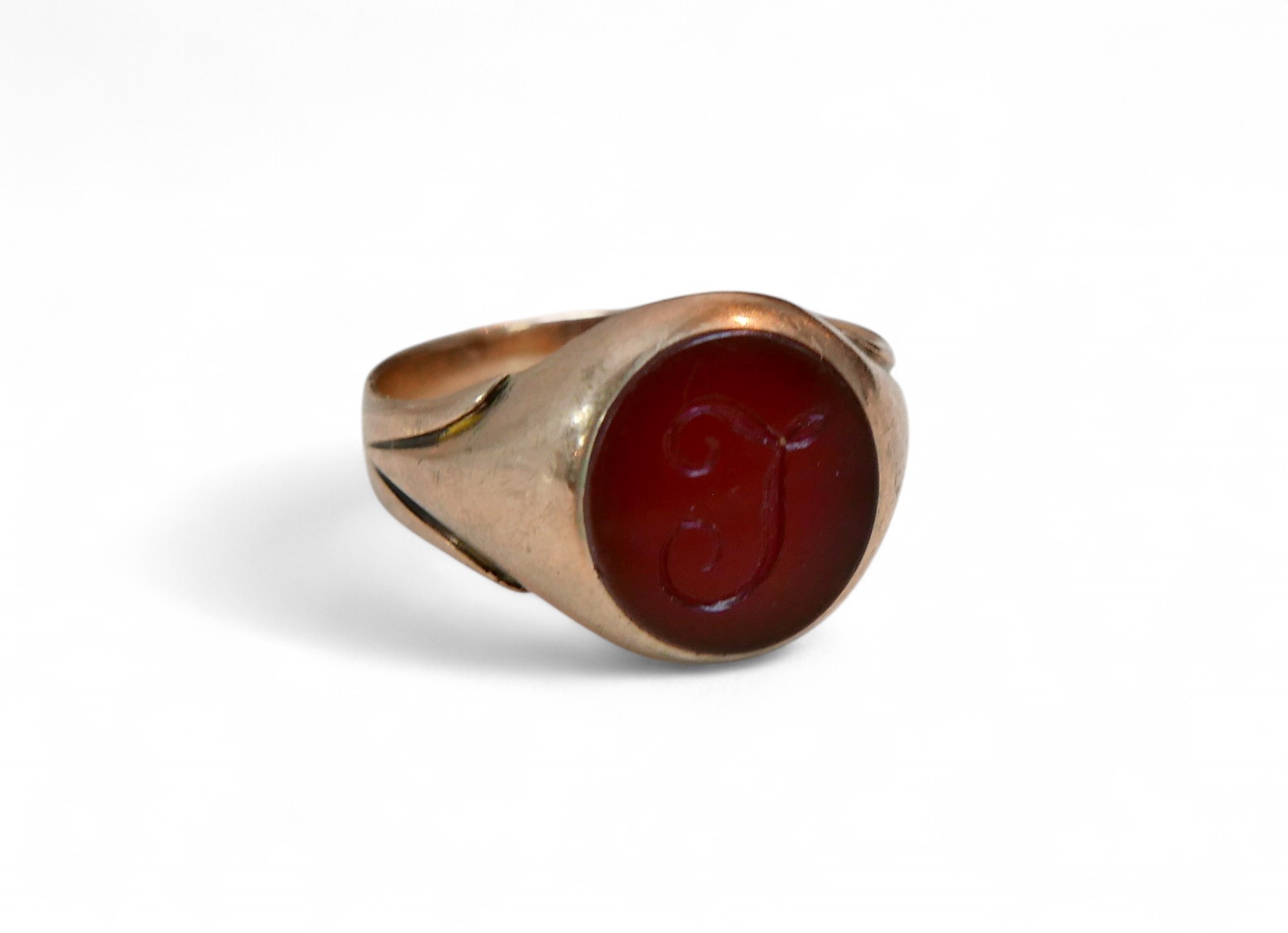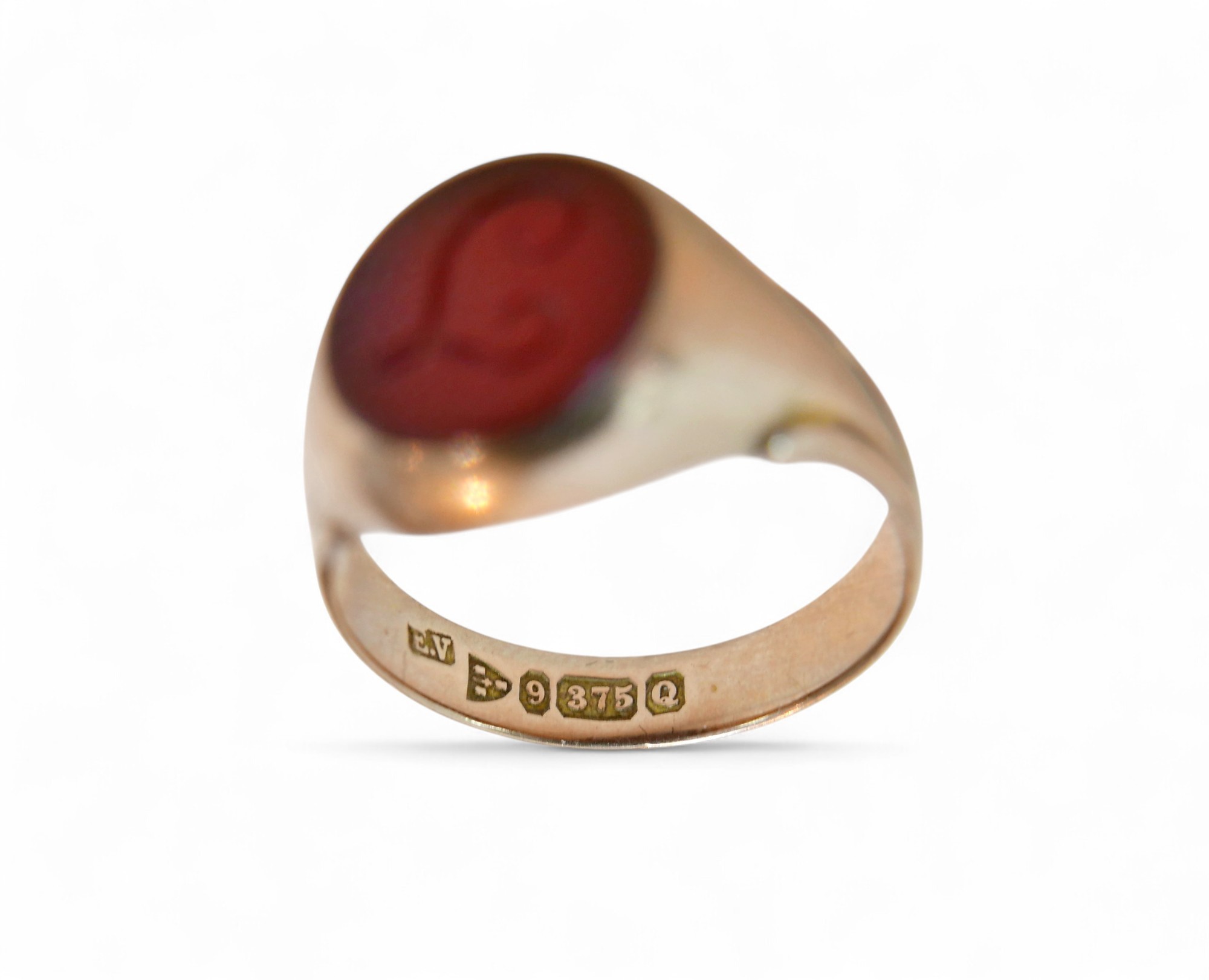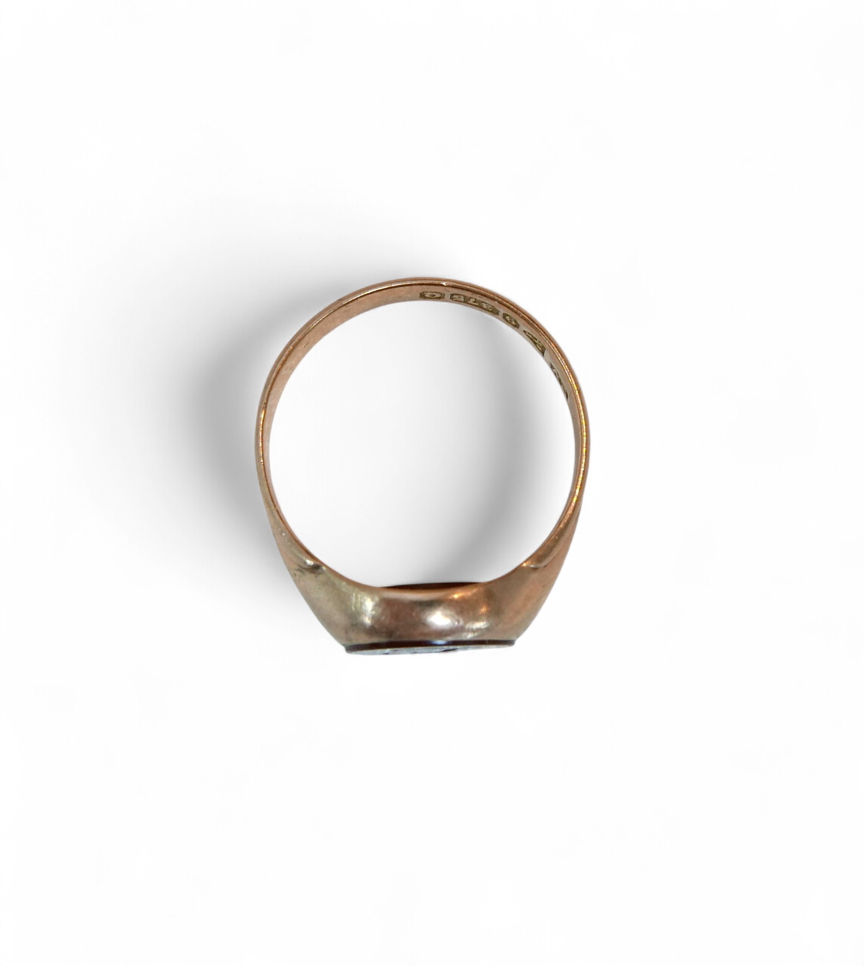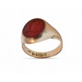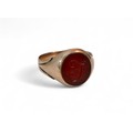 A 9ct gold and a red stone inlaid signet ring, size P, 4.2g.