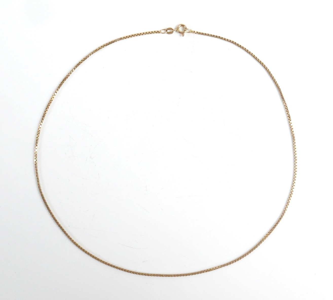 A 9ct gold box chain necklace, 46cm, 5.2g.