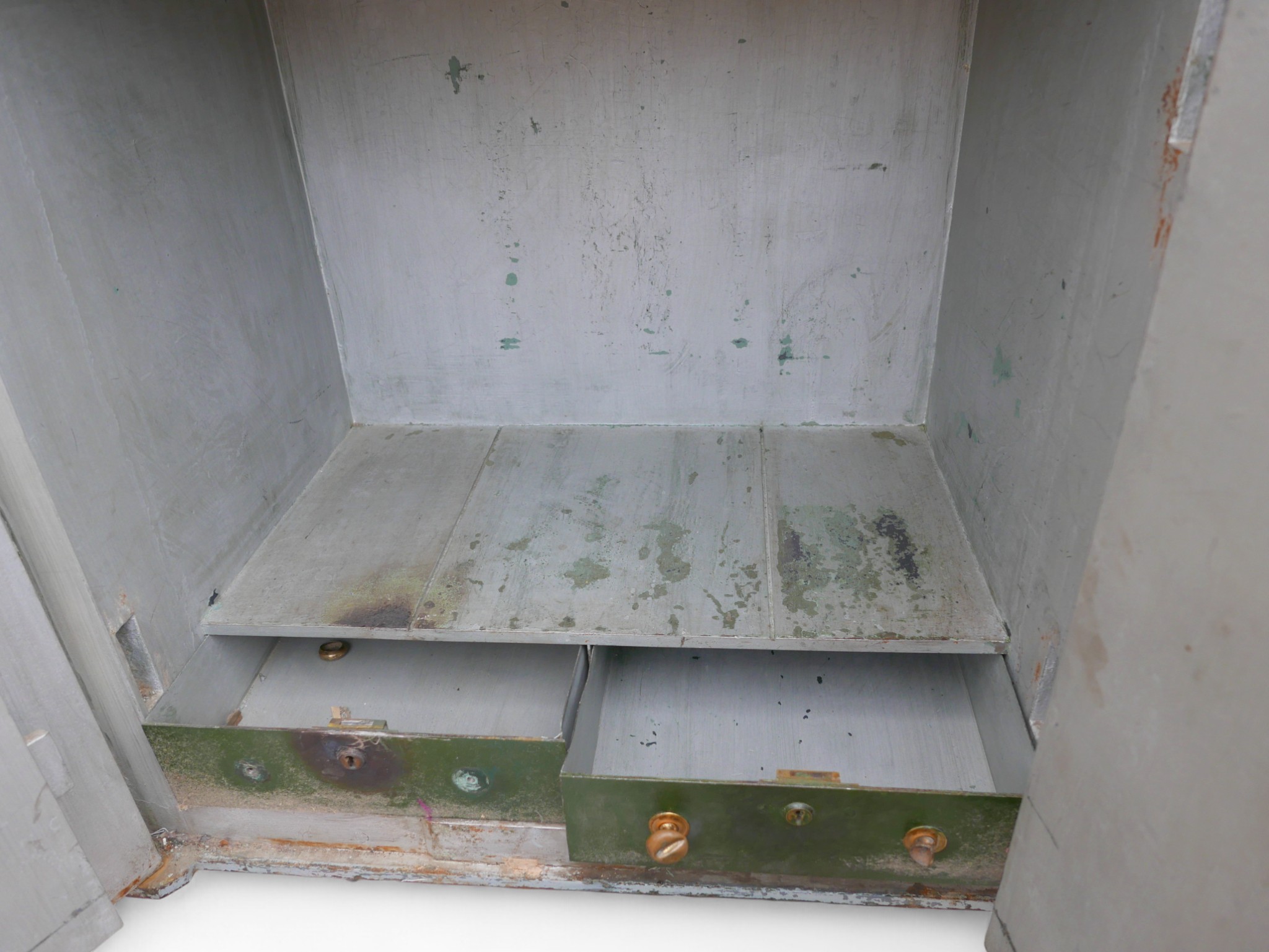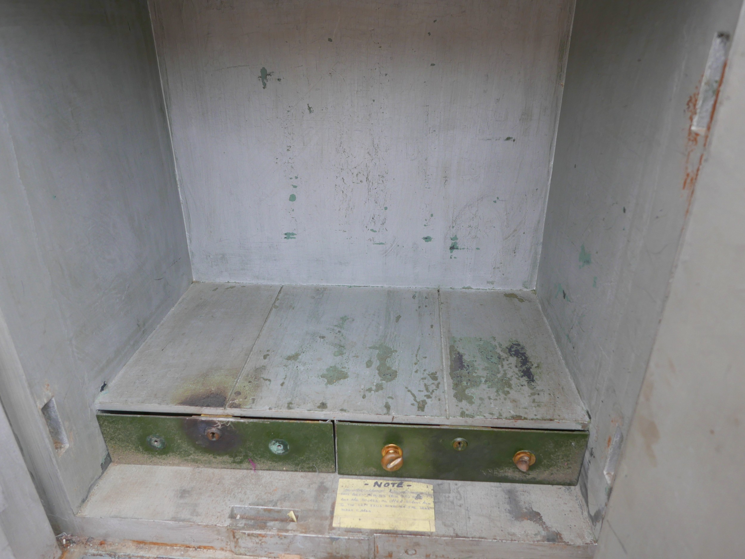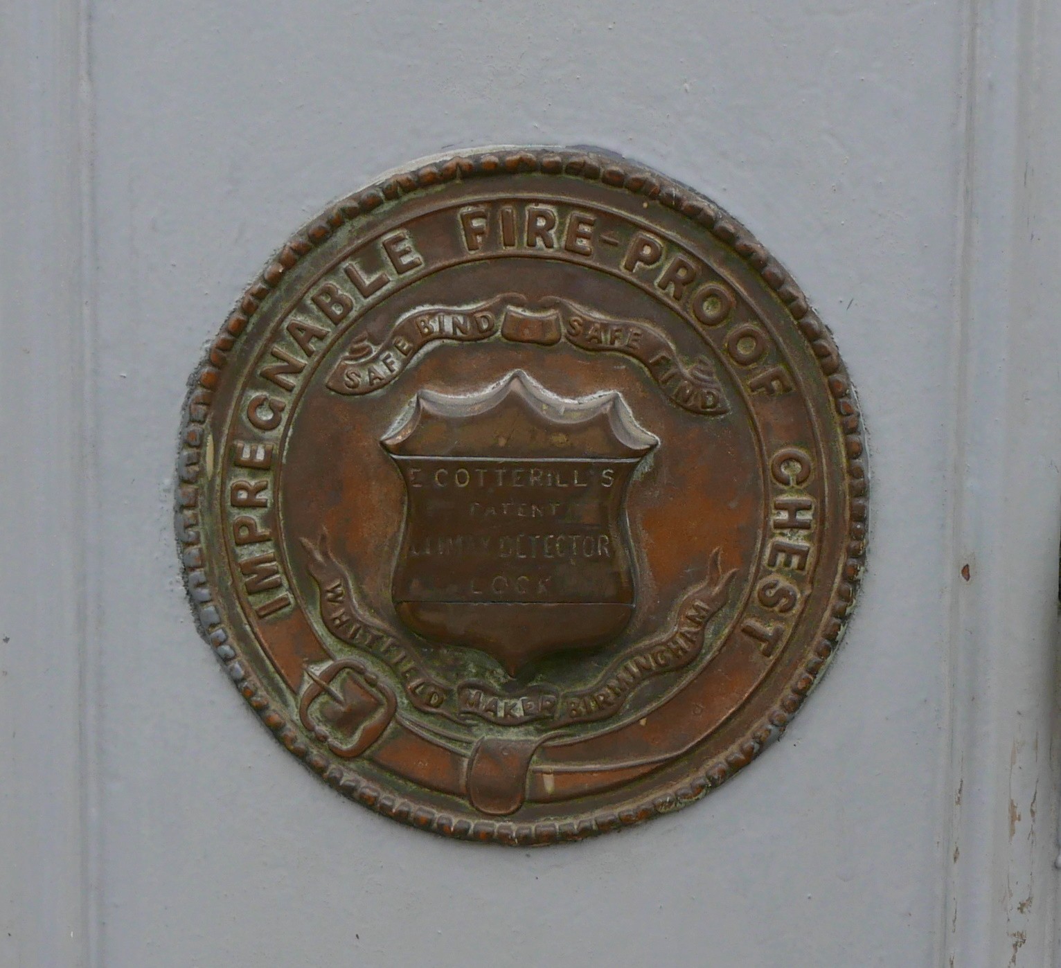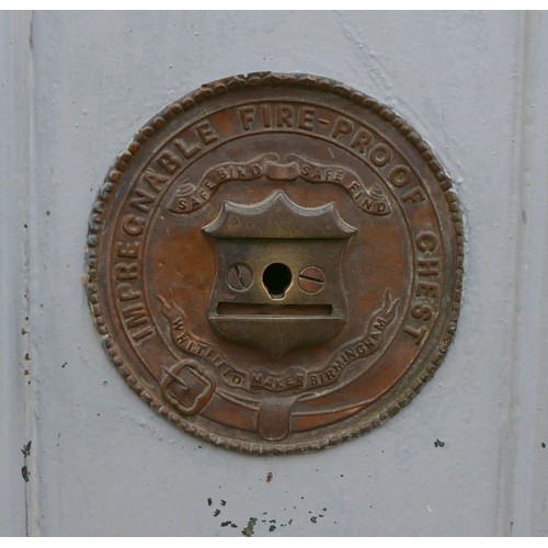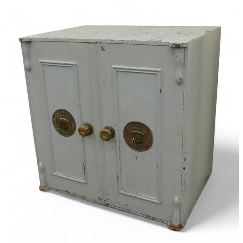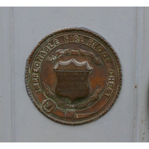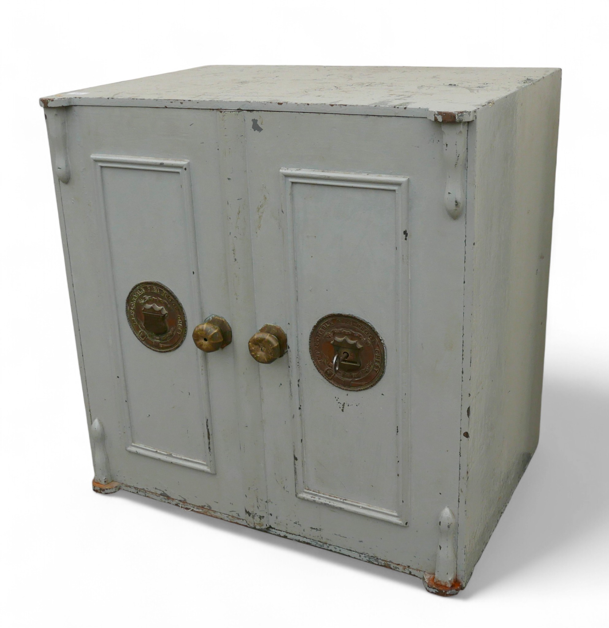 A Victorian Whitfield double door safe, 'Impregnable Fire-Proof Chest', with 'E. Cotterill's Patent Climax Detector Lock', brass handles and plaques, later painted grey, in working order with key, 76.5 by 55 by 76.5cm high.