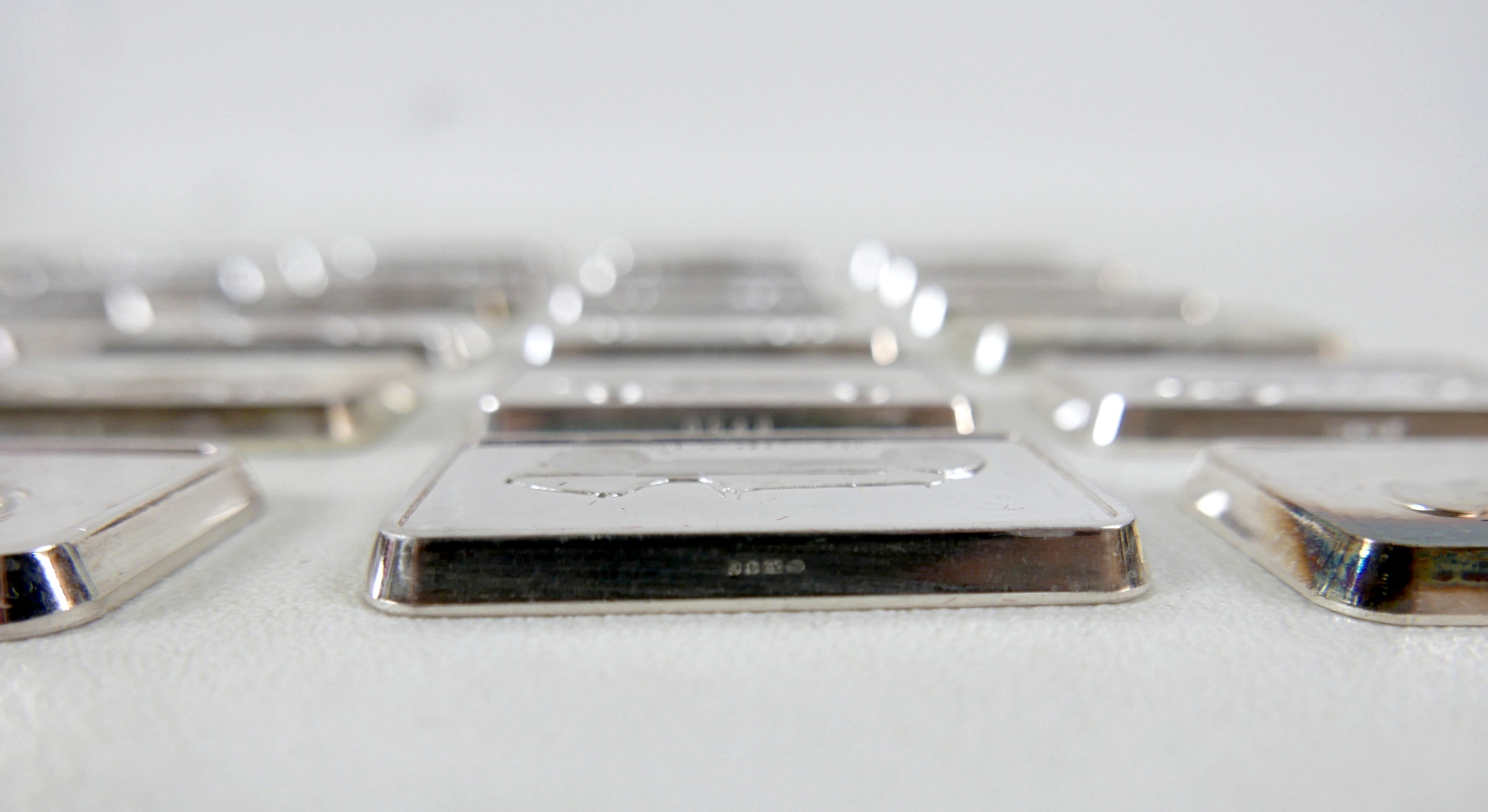 A collection of thirty-six silver ingots, commemorating the ...