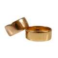 Two yellow gold band rings comprising an 18ct ring size S/T,...