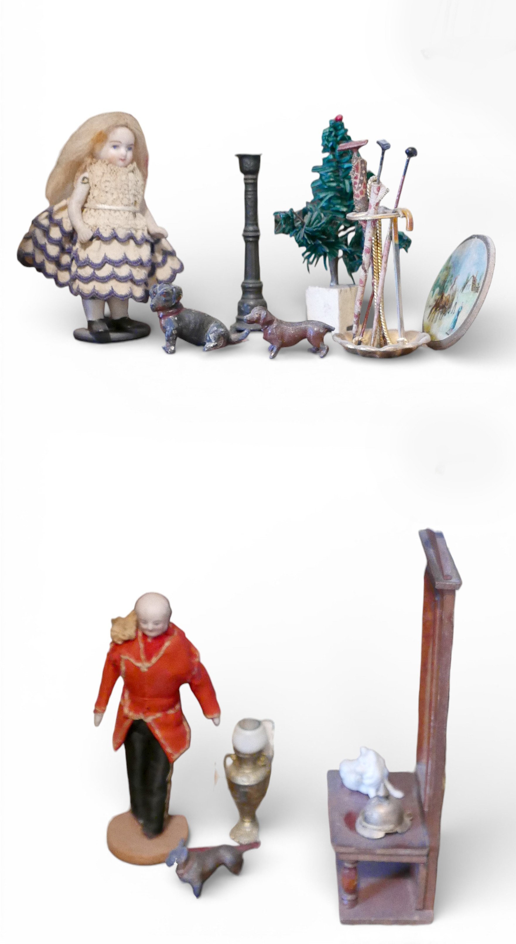 A group of doll's house accessories, including three figures...