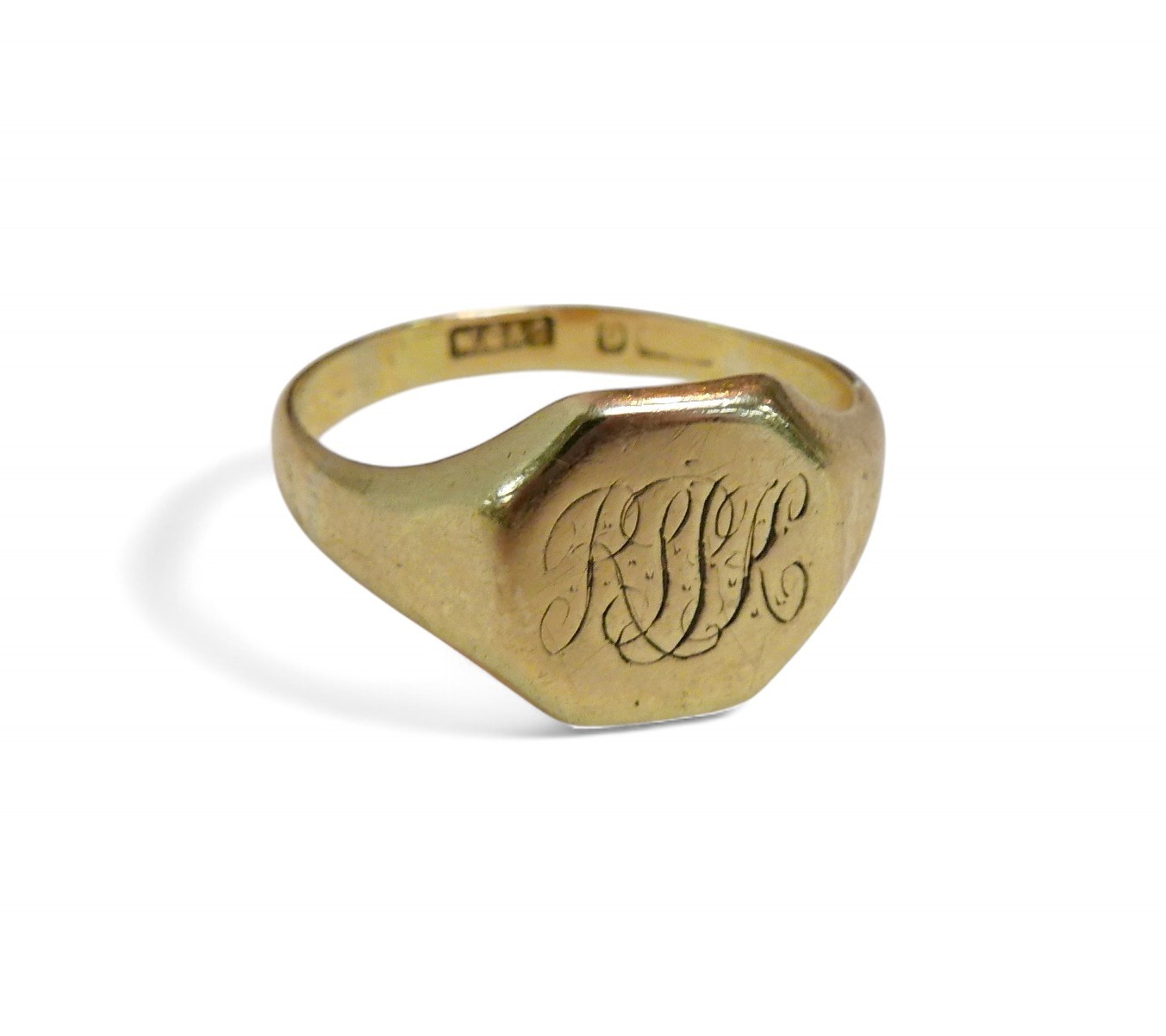 A 9ct gold signet ring, inscribed with monogram, size O, 4.2...